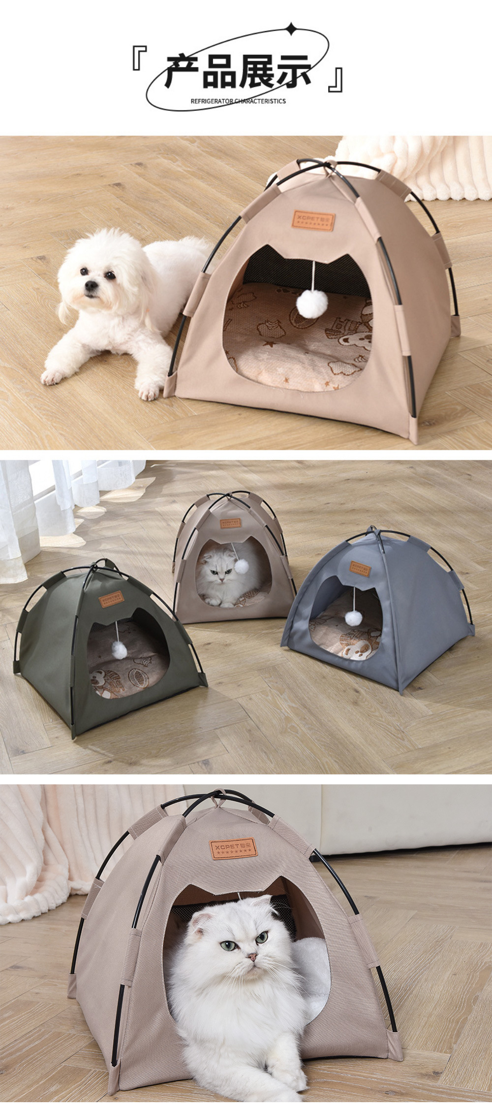 국경 간 인기 애완 동물 텐트 고양이 개집 접이식 이동식 및 세척 가능한 고양이 야외 텐트 사계절 범용 중소형 개 개집