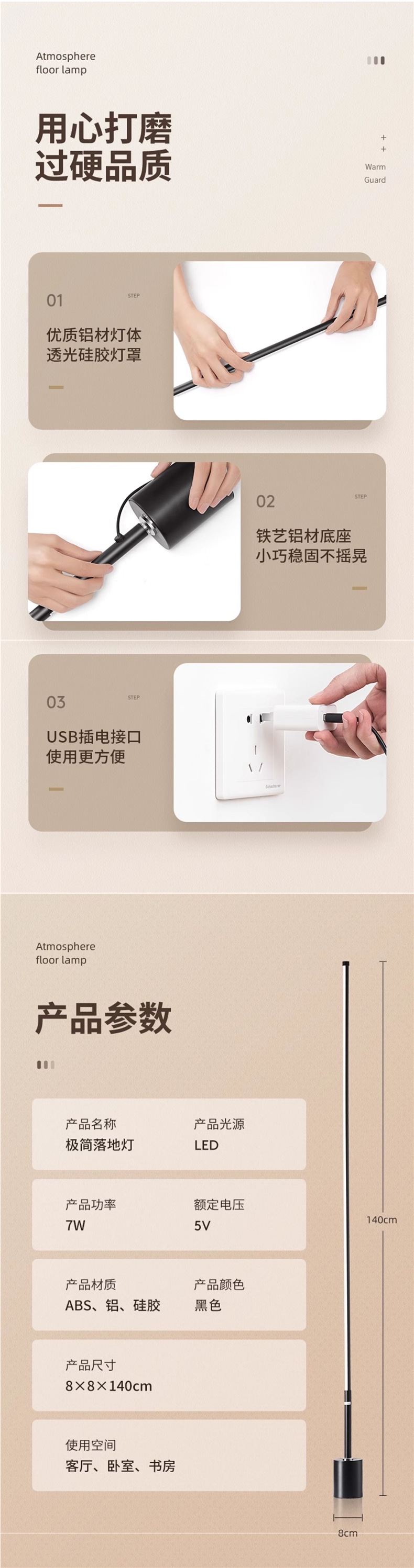• [140cm 버튼형]⭐더 넓은 조명 범위 + 따뜻한 조명 + 키 스위치 조명 + 플러그인 사용