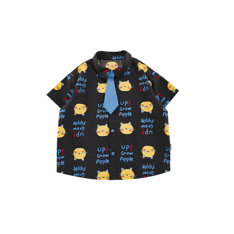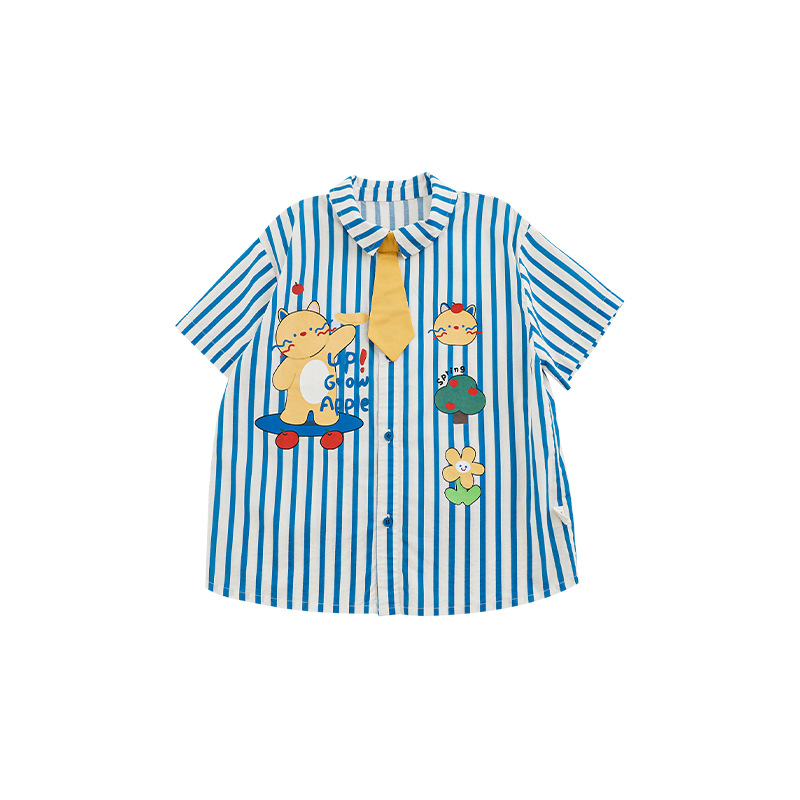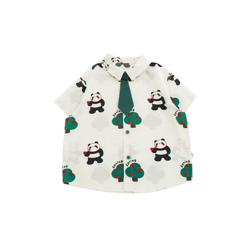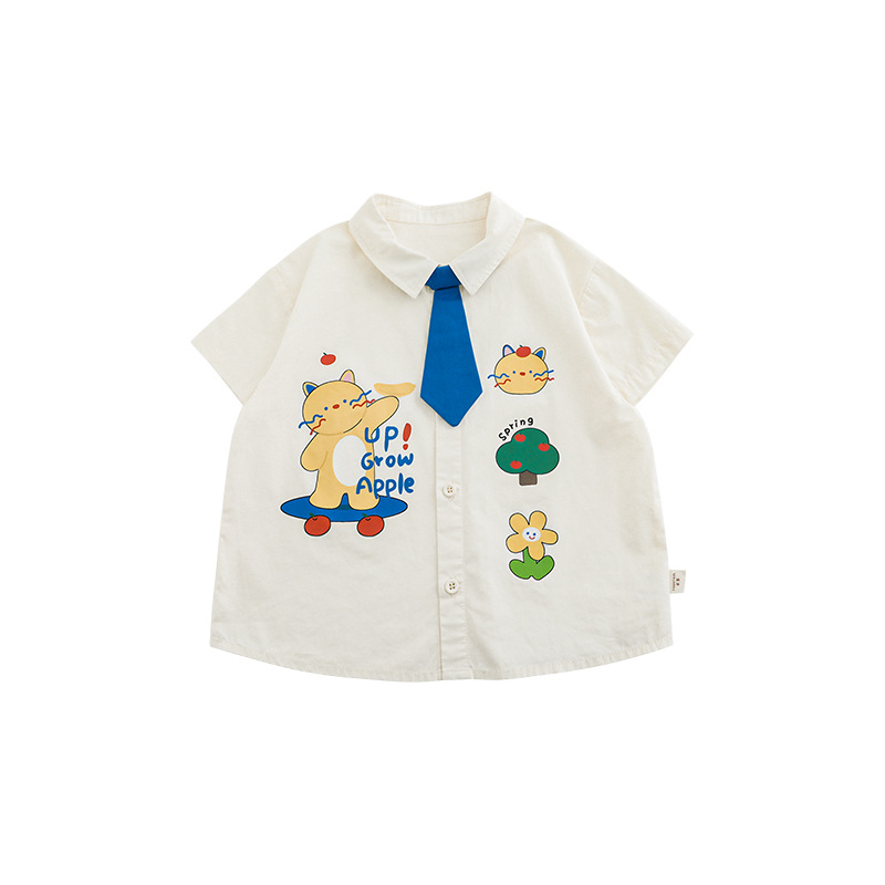 우리부 남아용 2026 봄 여름 신상 반팔 라펠 심플 카툰 셔츠 루즈핏 여행용 셔츠 트렌디스토어 가기