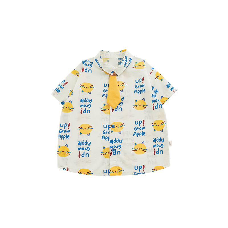 우리부 남아용 2026 봄 여름 신상 반팔 라펠 심플 카툰 셔츠 루즈핏 여행용 셔츠 트렌디