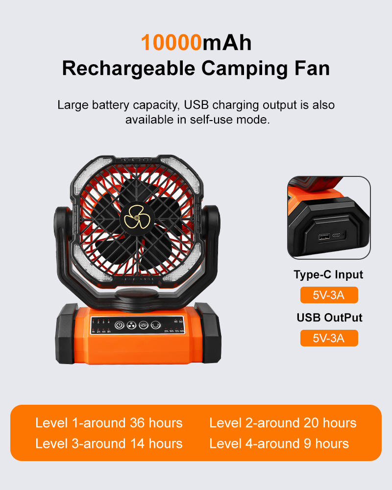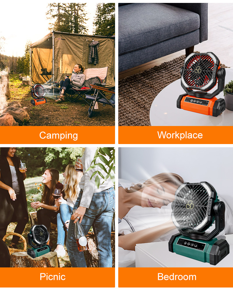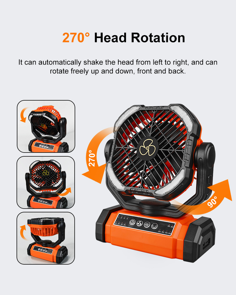국경 간 야외 팬 휴대용 대용량 무단 속도 조절 충전 캠핑 팬 낚시 캠핑 텐트 조명