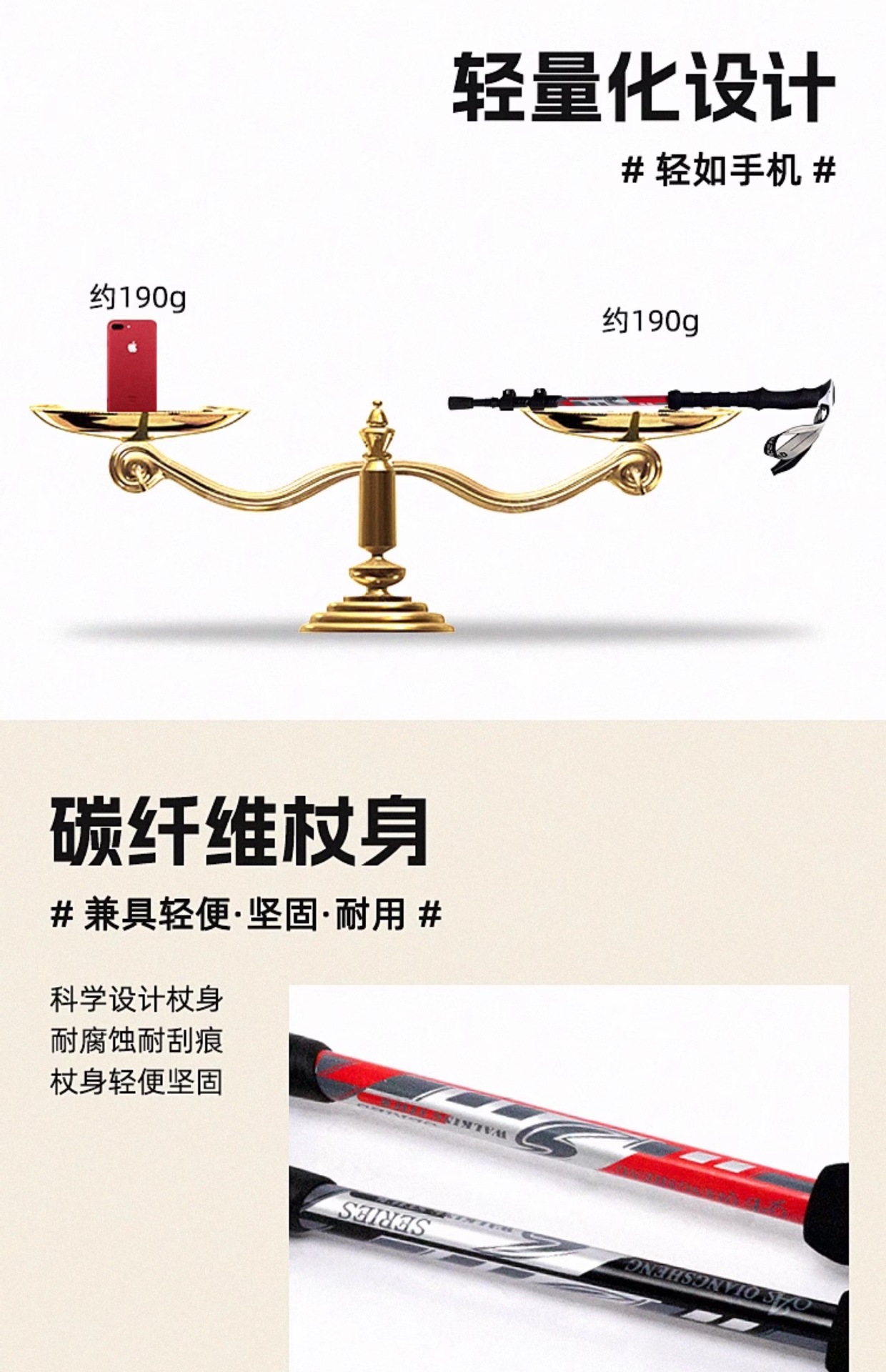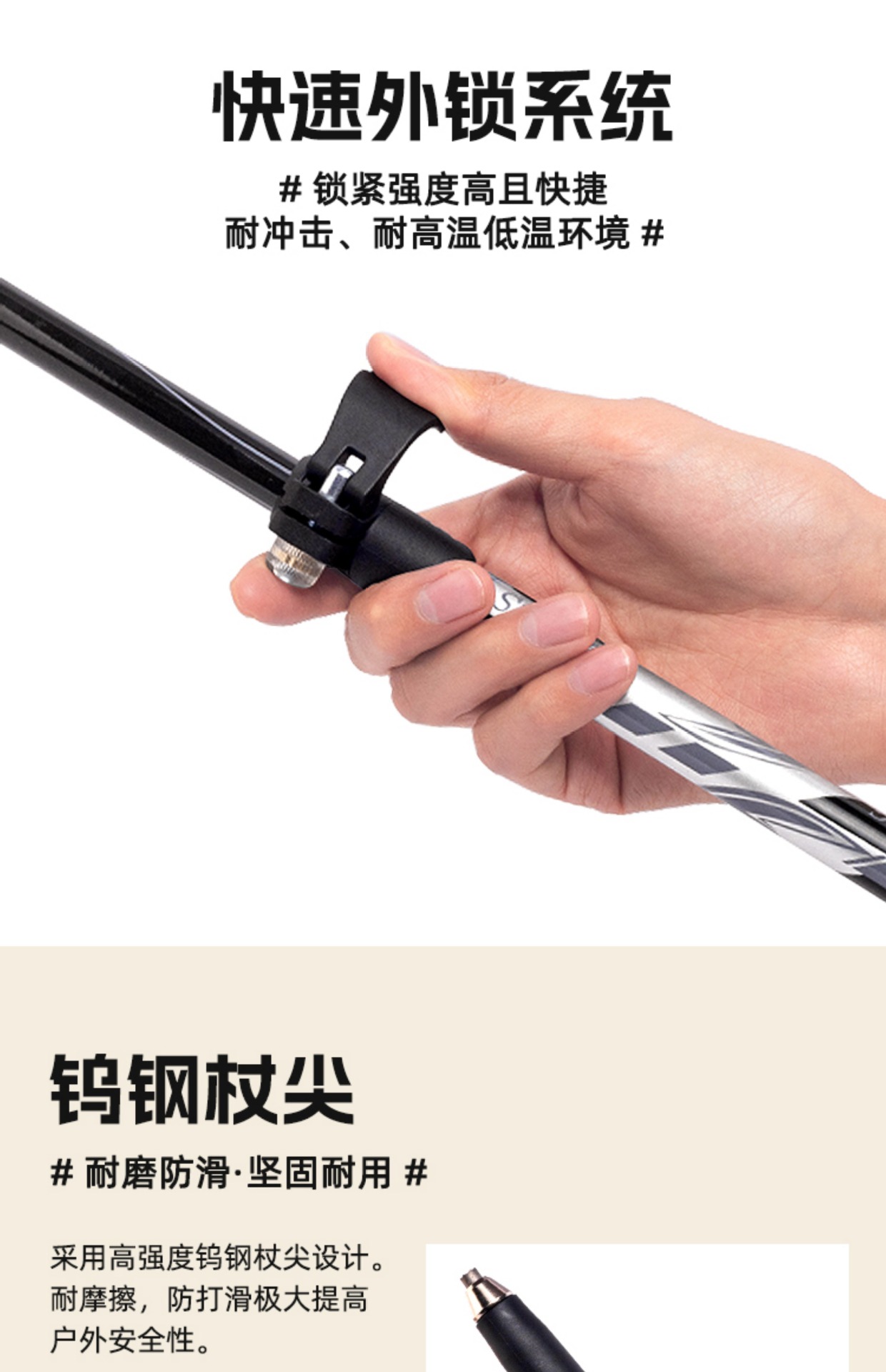 여행자 야외 하이킹 산 등반 3 섹션 경량 등산 스틱 탄소 망원경 외부 잠금 탄소 섬유 하이킹 스틱