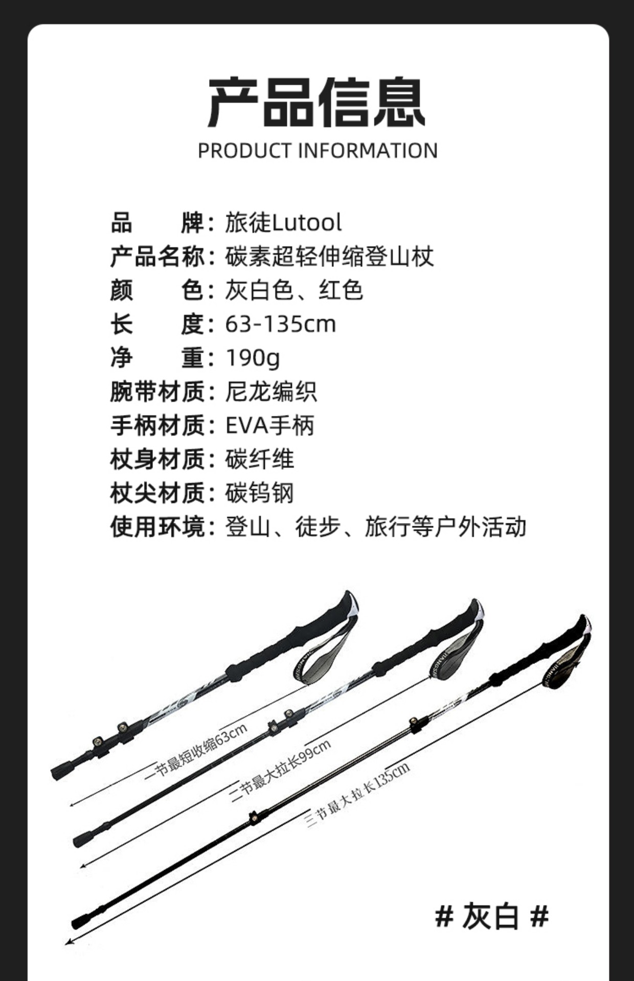 여행자 야외 하이킹 산 등반 3 섹션 경량 등산 스틱 탄소 망원경 외부 잠금 탄소 섬유 하이킹 스틱스토어 가기