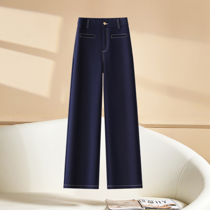 진한 파란색 청바지 여성용 가을 2025 신상 루즈핏 슬림핏 바지 미국 레트로 얇은 와이드 팬츠