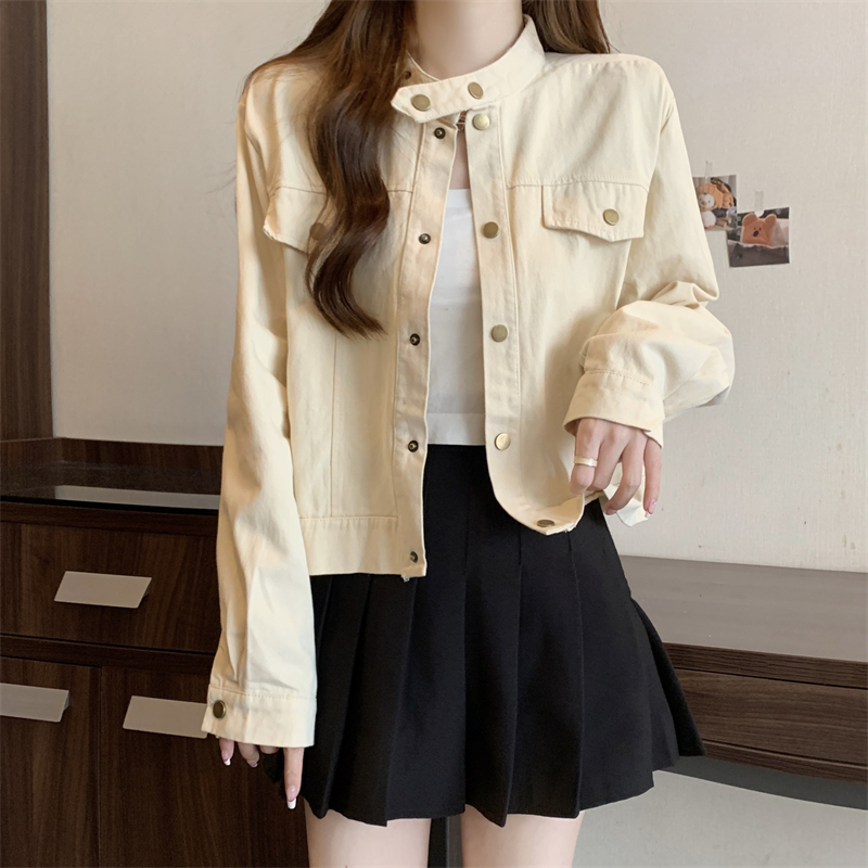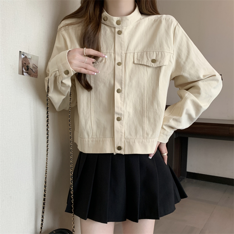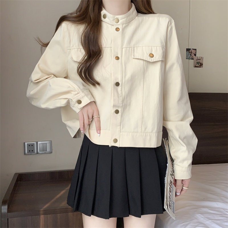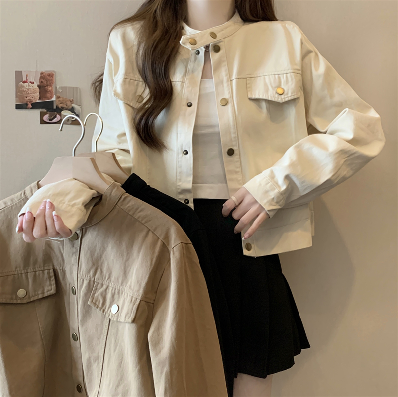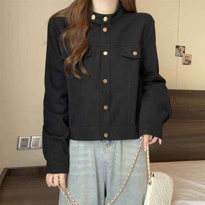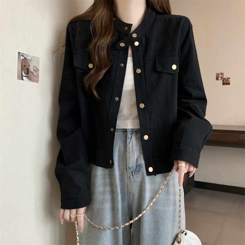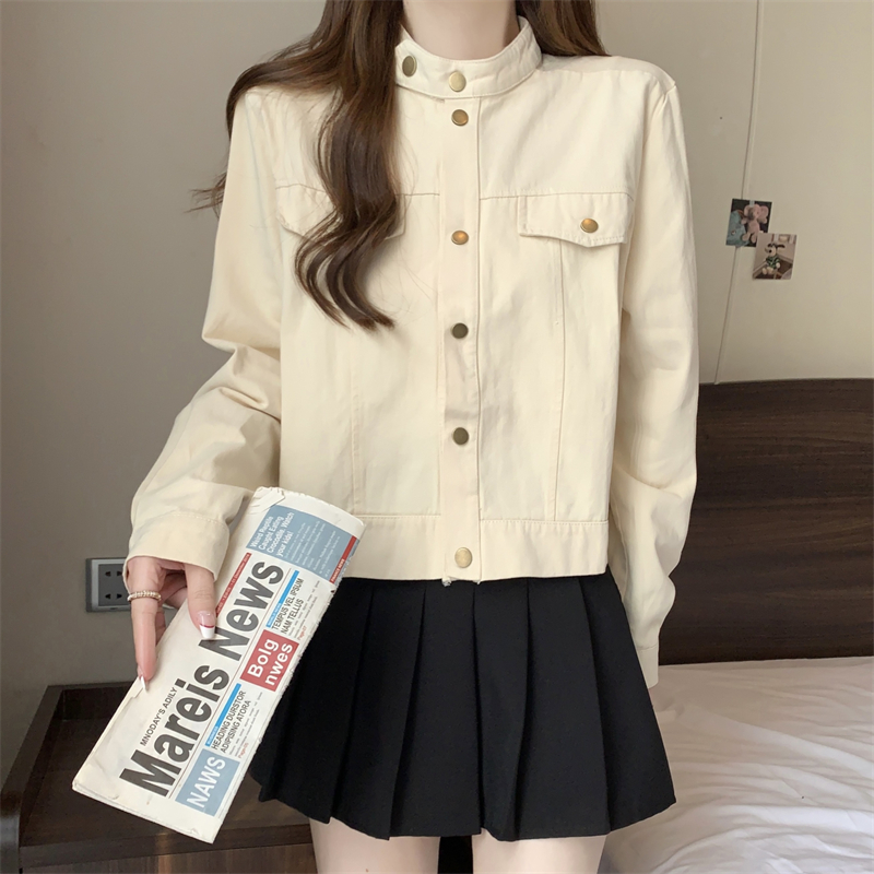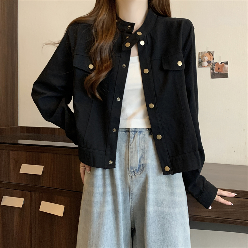 플러스 사이즈 통통녀 미국 스탠드 칼라 재킷 여성 2025 년 봄과 가을 새로운 프록 바람 어깨 쇼트 탑스토어 가기
