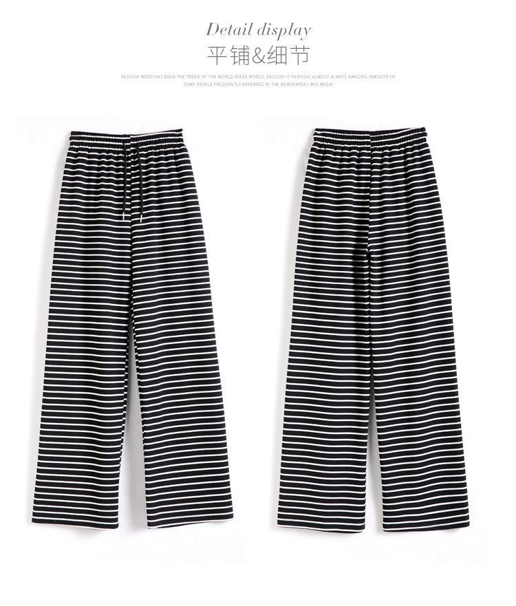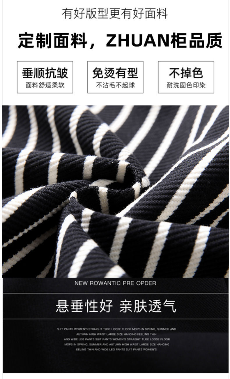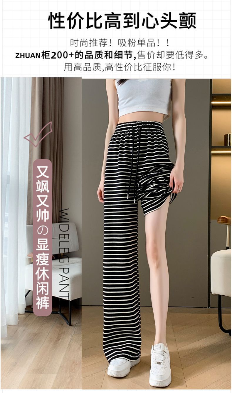 여름 아이스 실크 스트라이프 와이드 레그 팬츠 여성용 슬림 룩 스트레이트 하이 웨이스트 블랙 및 화이트 스트라이프 캐주얼 바지 여성용 드레이프 바지스토어 가기