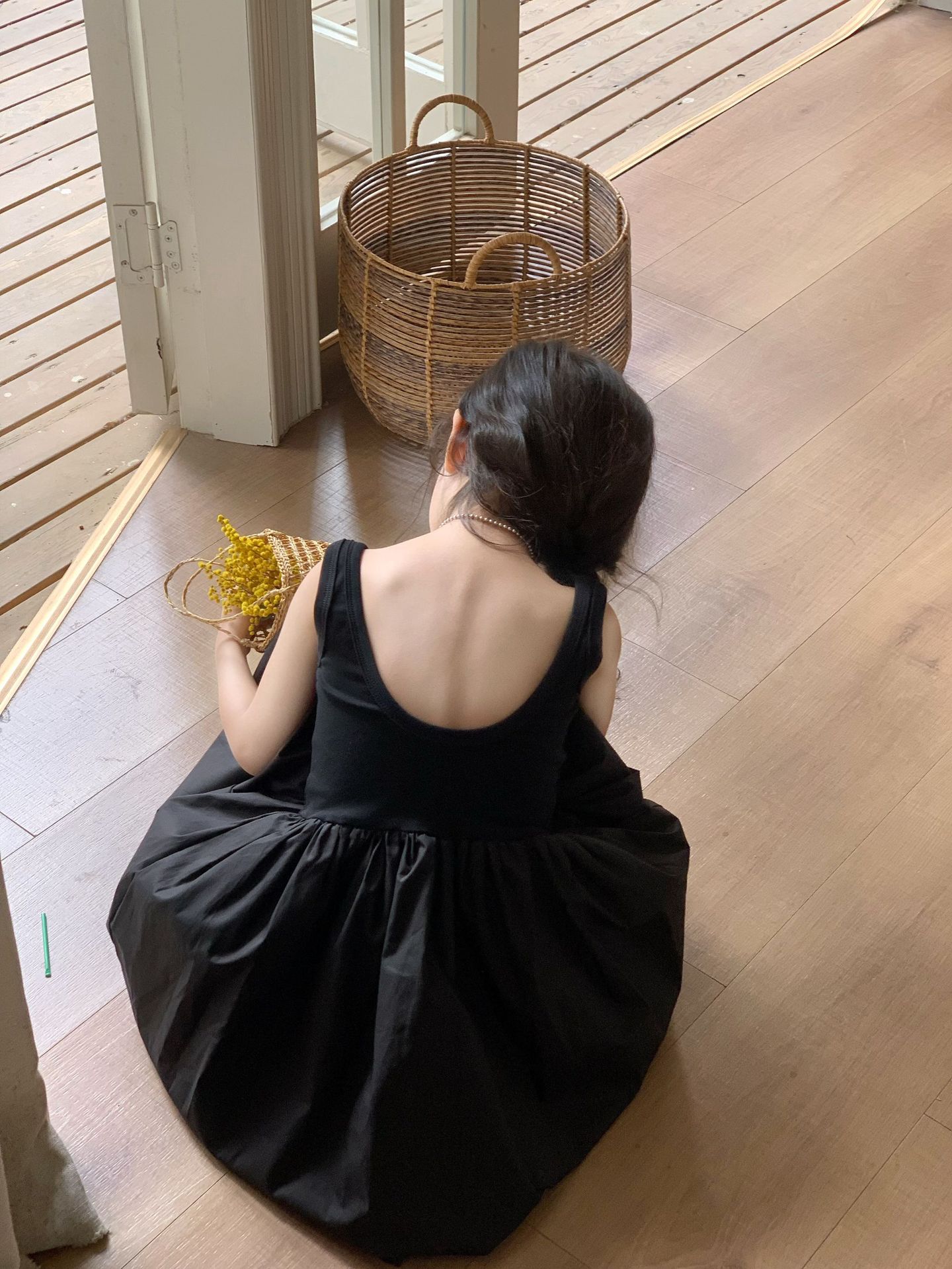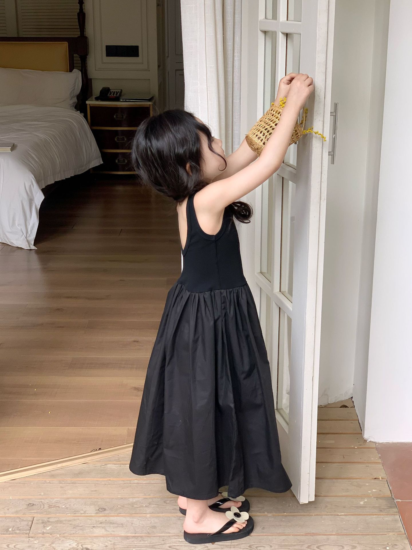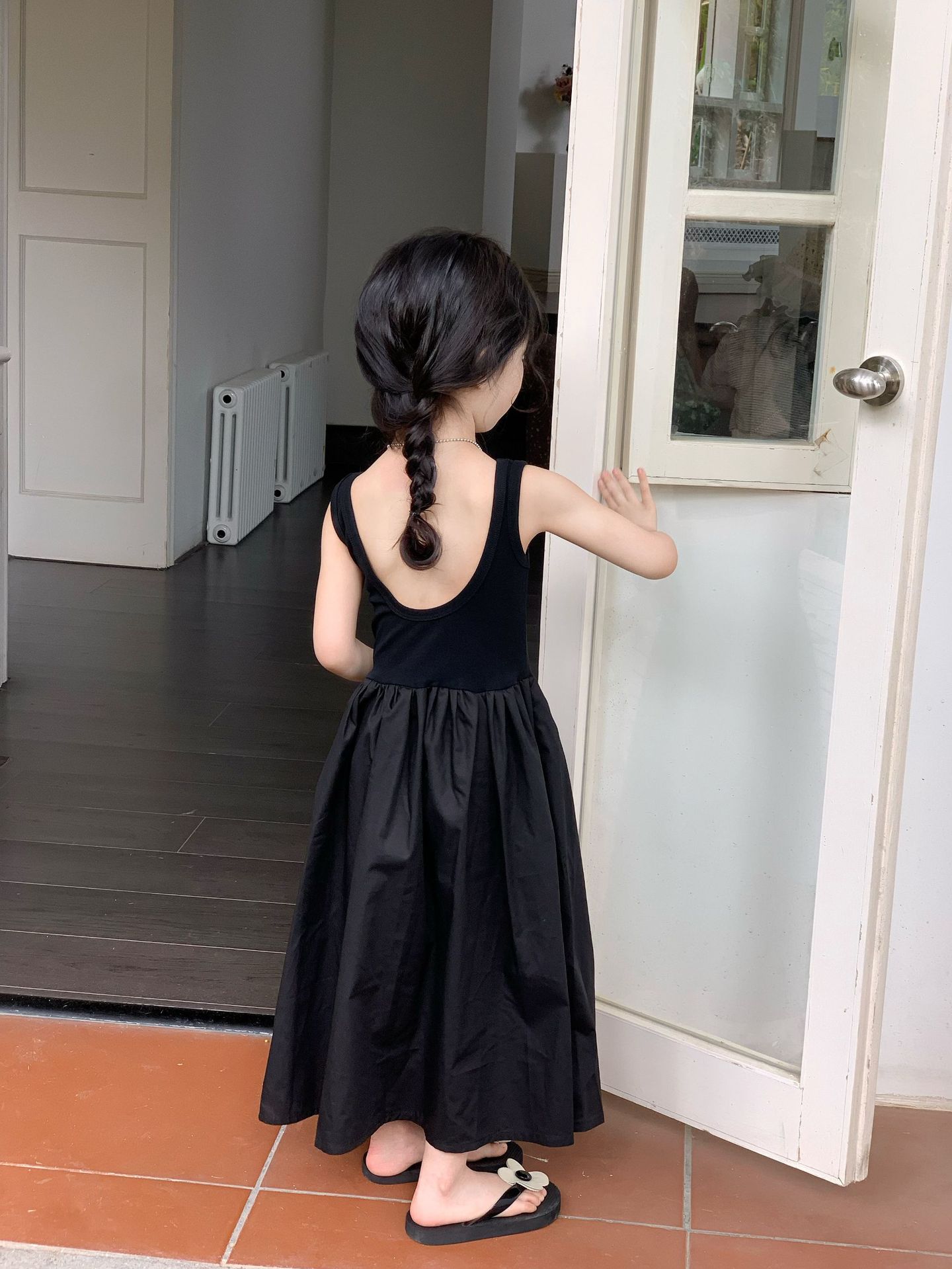 2025 한국식 비치 원피스 여아용 백리스 슬링 치마 착용 여름 원피스 어린이 해변 휴가