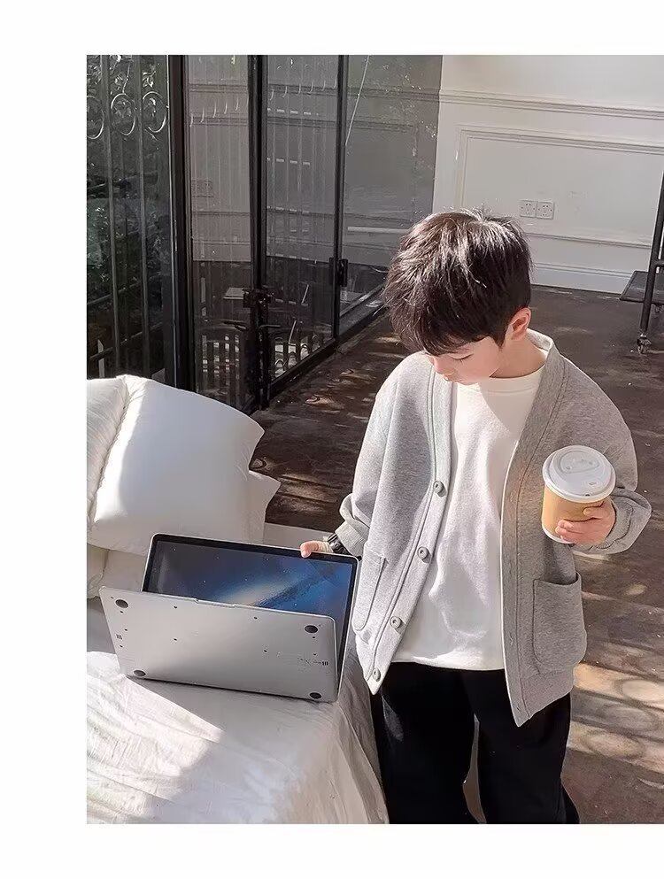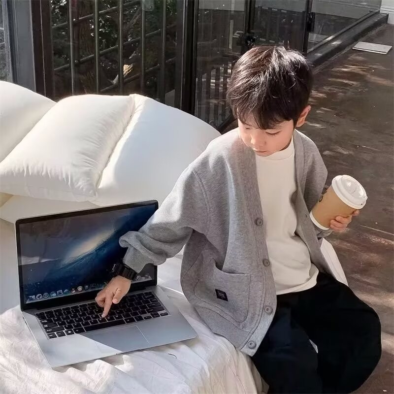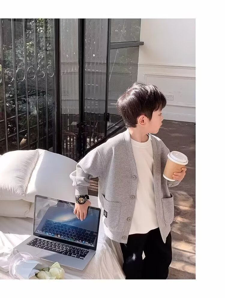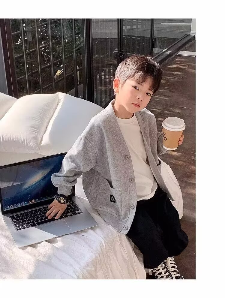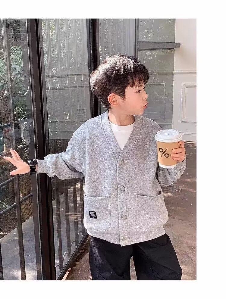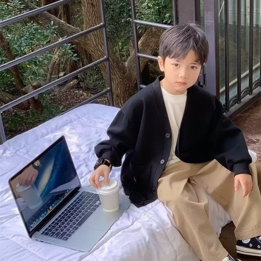 남학생 코트 2025 새 어린이 카디건 봄 · 가을 한국 스타일 톱 보이즈 서양식 학술 스타일 캐주얼 코트