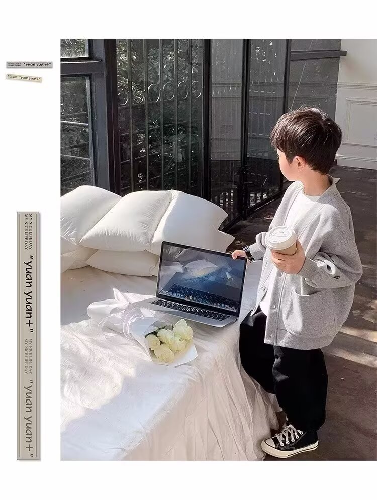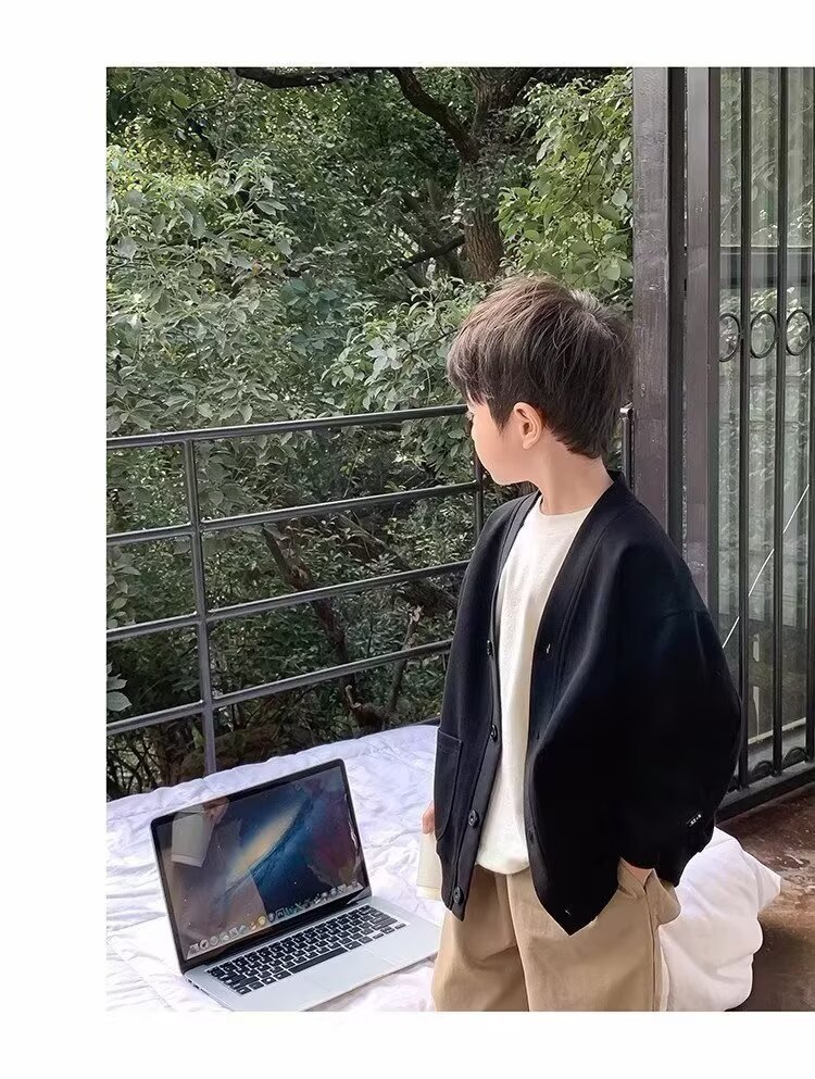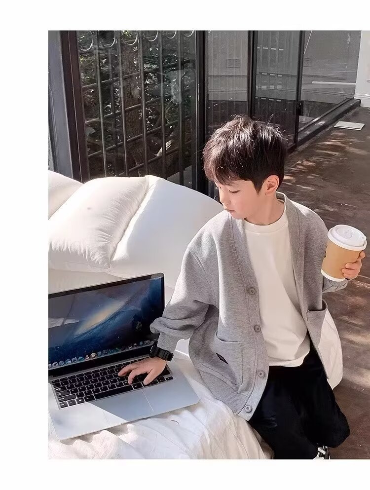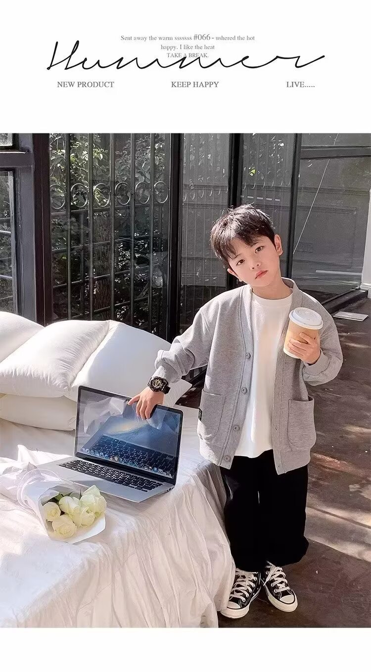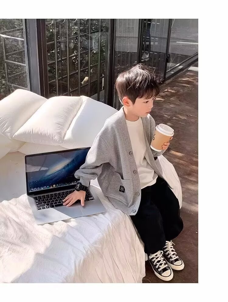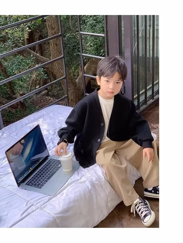 남학생 코트 2025 새 어린이 카디건 봄 · 가을 한국 스타일 톱 보이즈 서양식 학술 스타일 캐주얼 코트