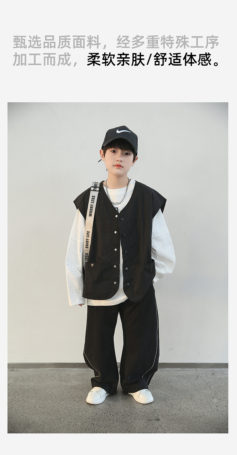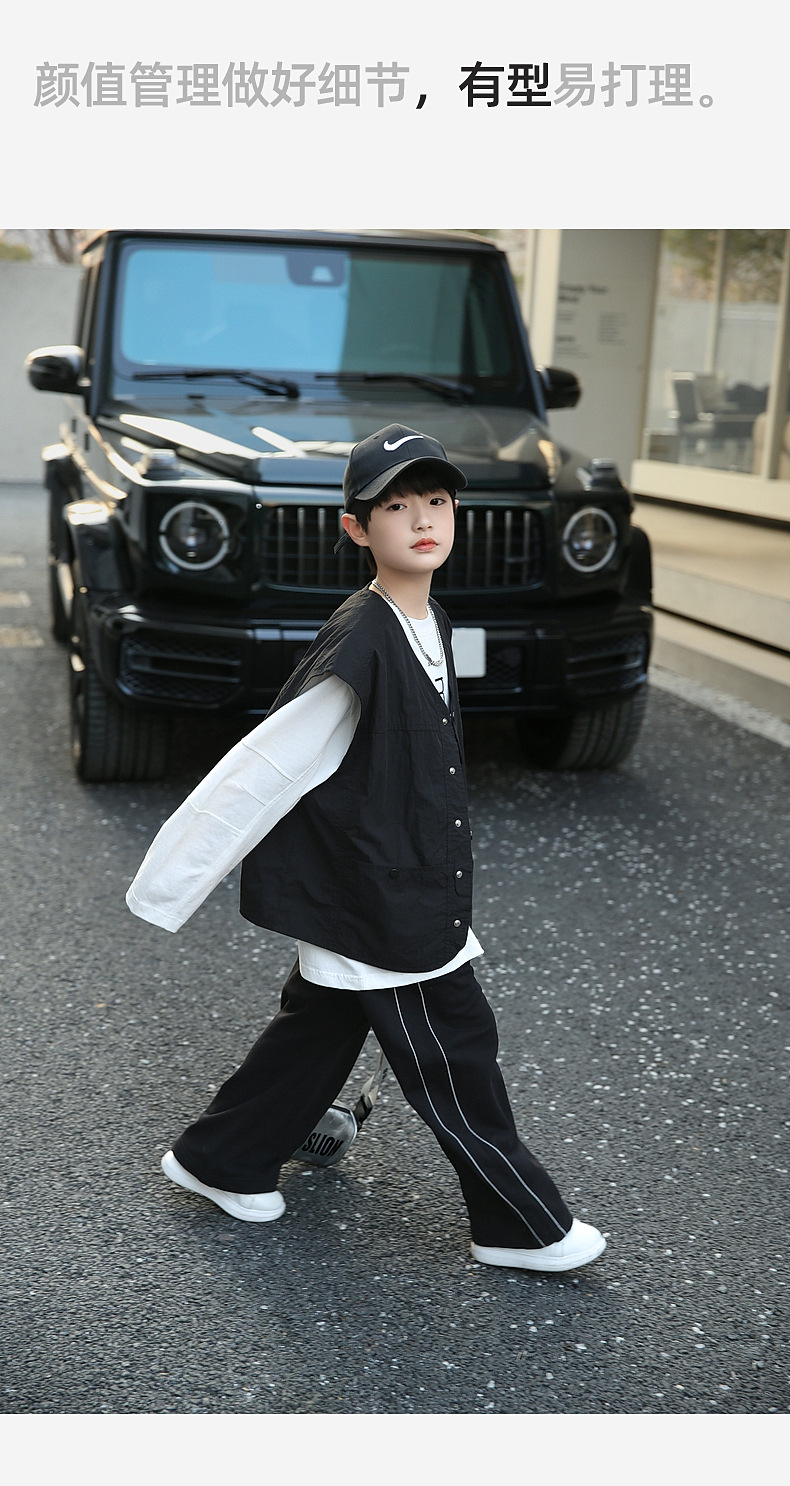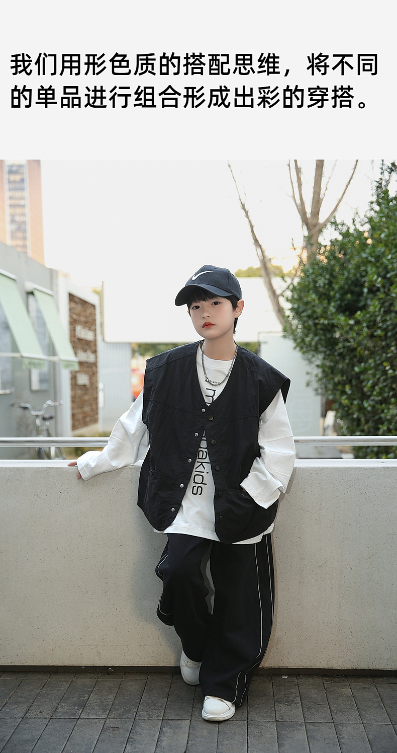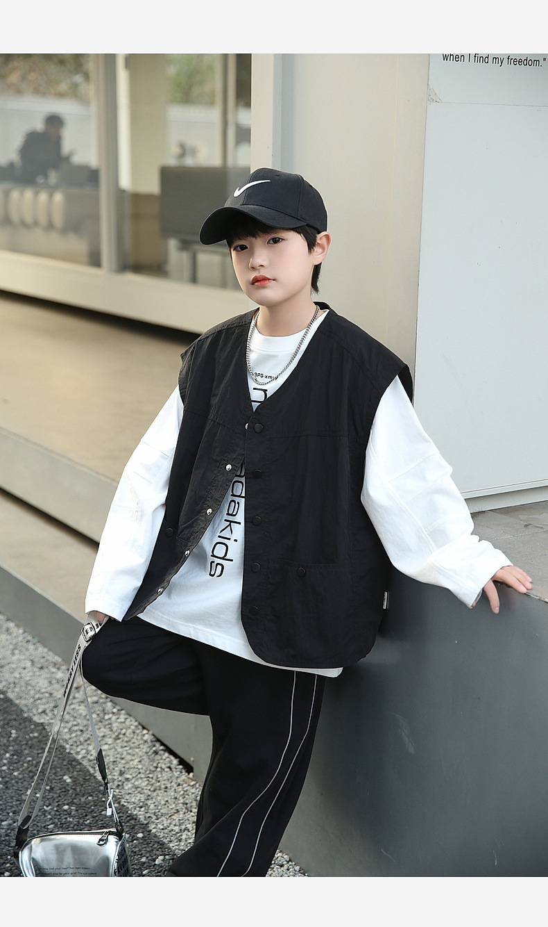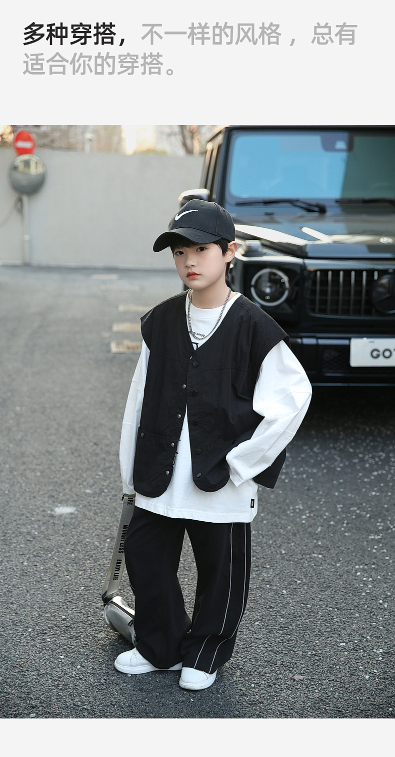 Panda Yuanyuan 스트리트 댄스 기능성 스타일 아동용 조끼 2025 새로운 중대형 어린이 소년 가을 민소매 조끼 재킷스토어 가기