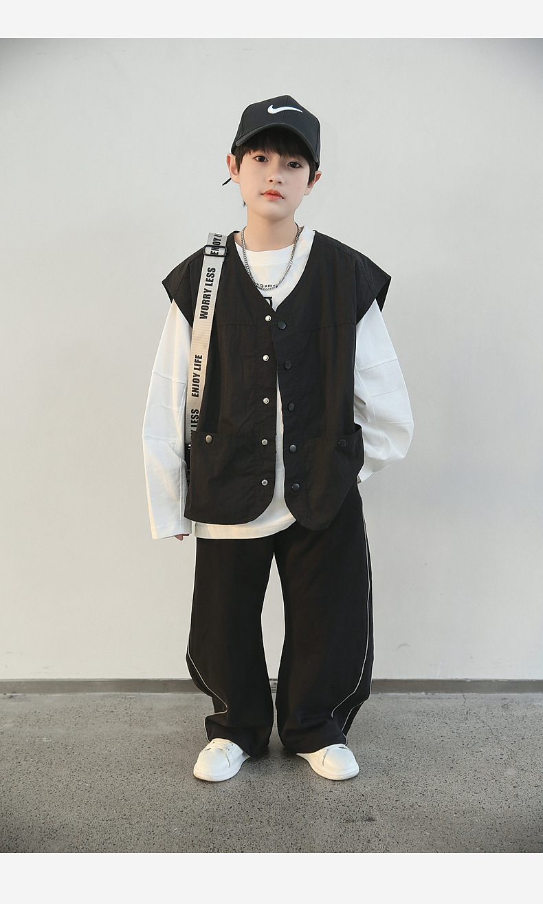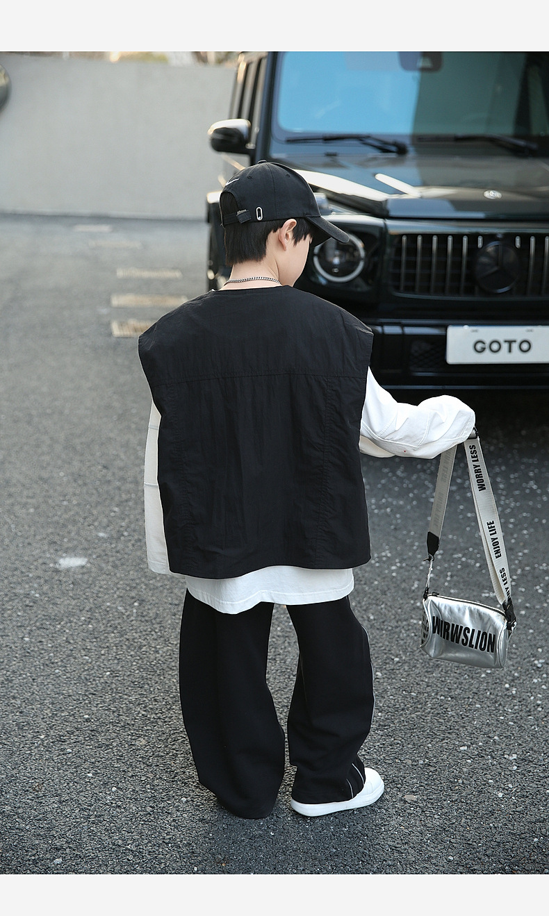Panda Yuanyuan 스트리트 댄스 기능성 스타일 아동용 조끼 2025 새로운 중대형 어린이 소년 가을 민소매 조끼 재킷