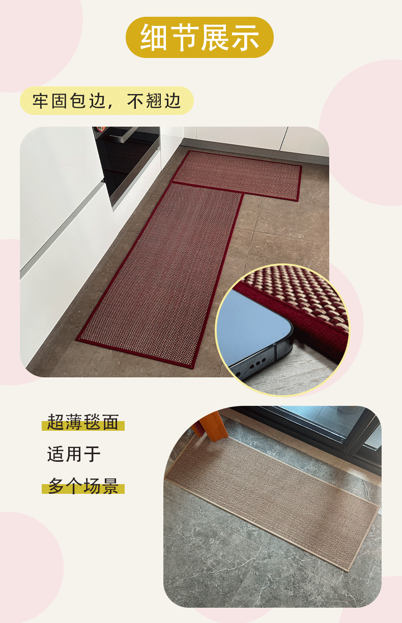 간단한 스타일 짠 질감 가장자리 공예 바닥 매트 입구 주방 물 흡수성 오일 흡수성 고무 바닥 미끄럼 방지 마모 방지