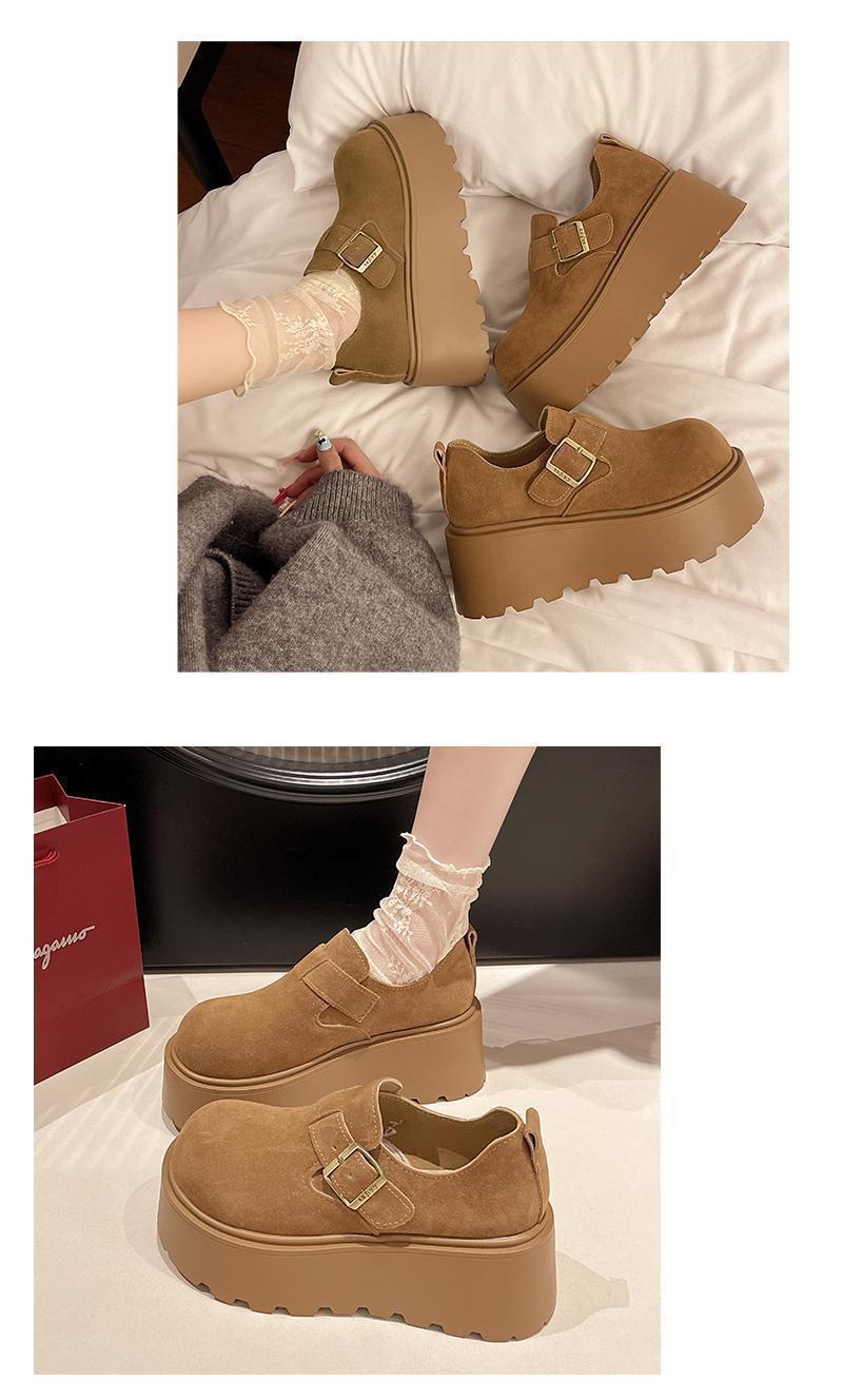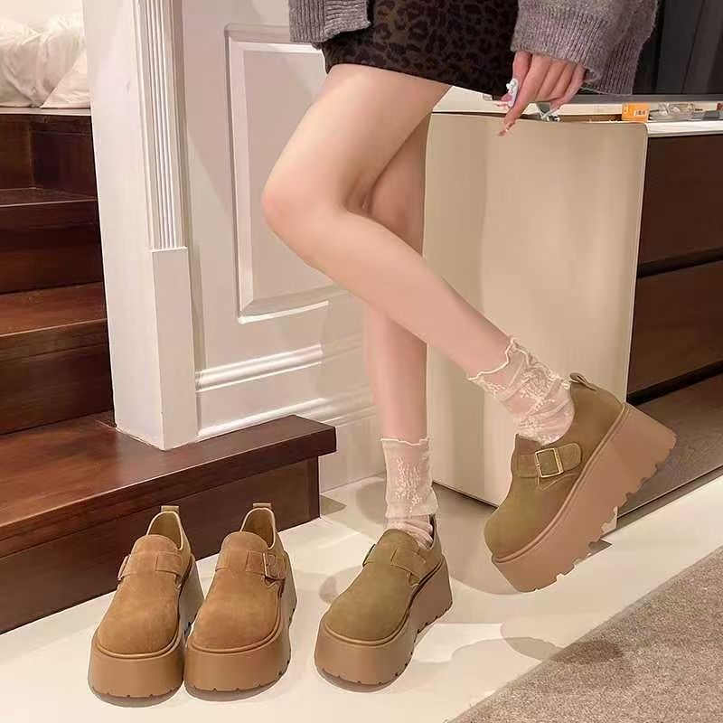 2024 가을과 겨울 머핀 로퍼 치마 두꺼운 밑창 고층 보켄 신발 여성용 원스텝 보켄 신발스토어 가기