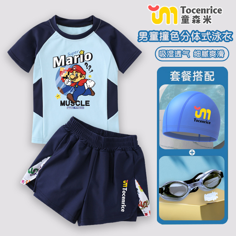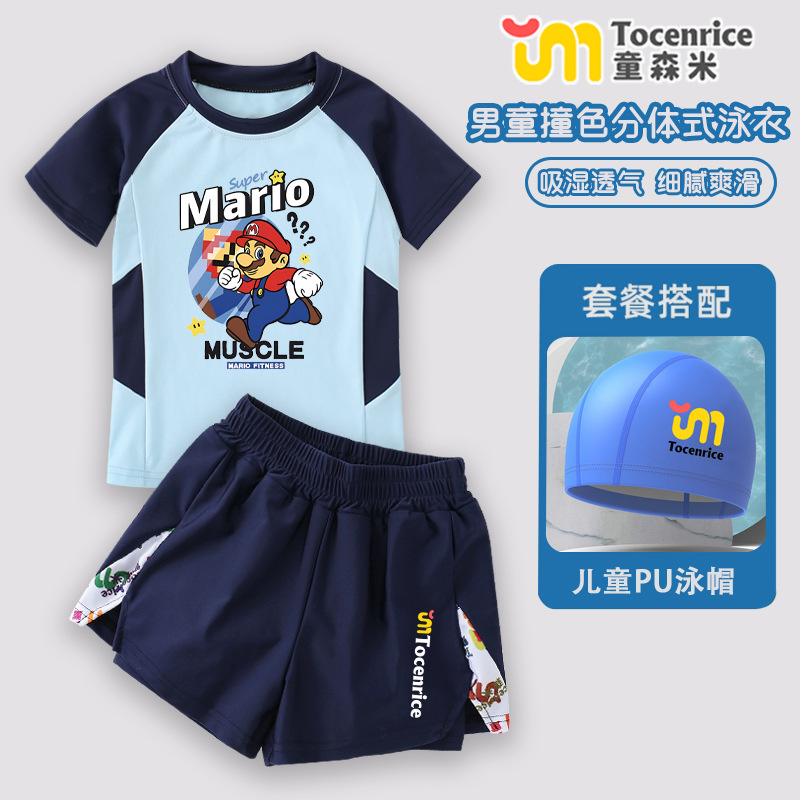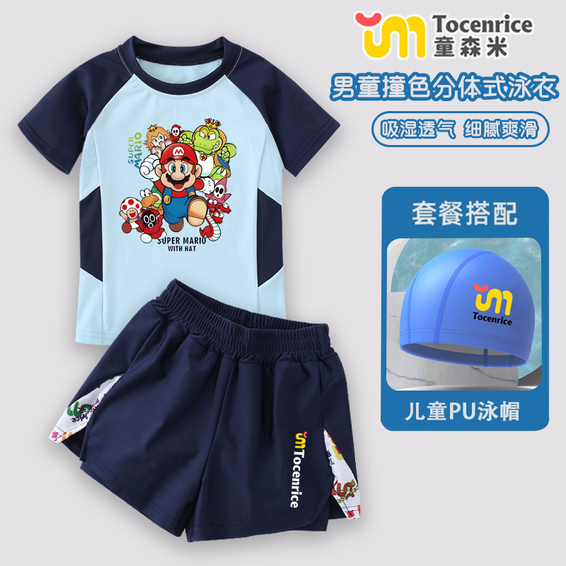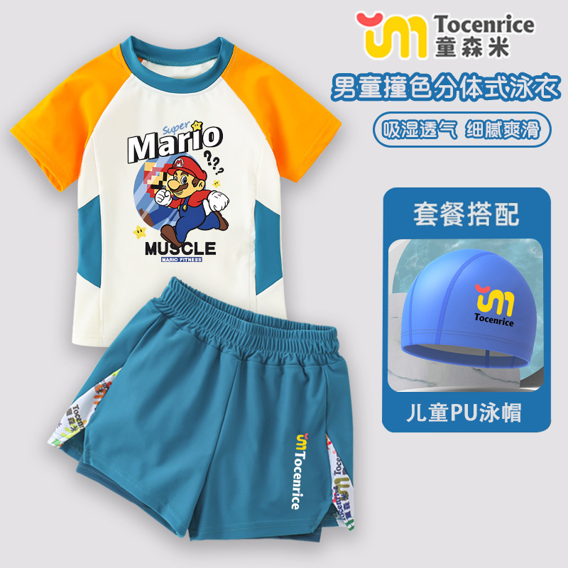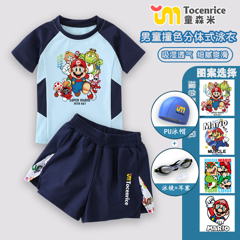 슈퍼 마리오 수영복 소년 여름 아기 태양 보호 빠른 건조 분할 수영 트렁크 큰 아이 잘 생긴 세트