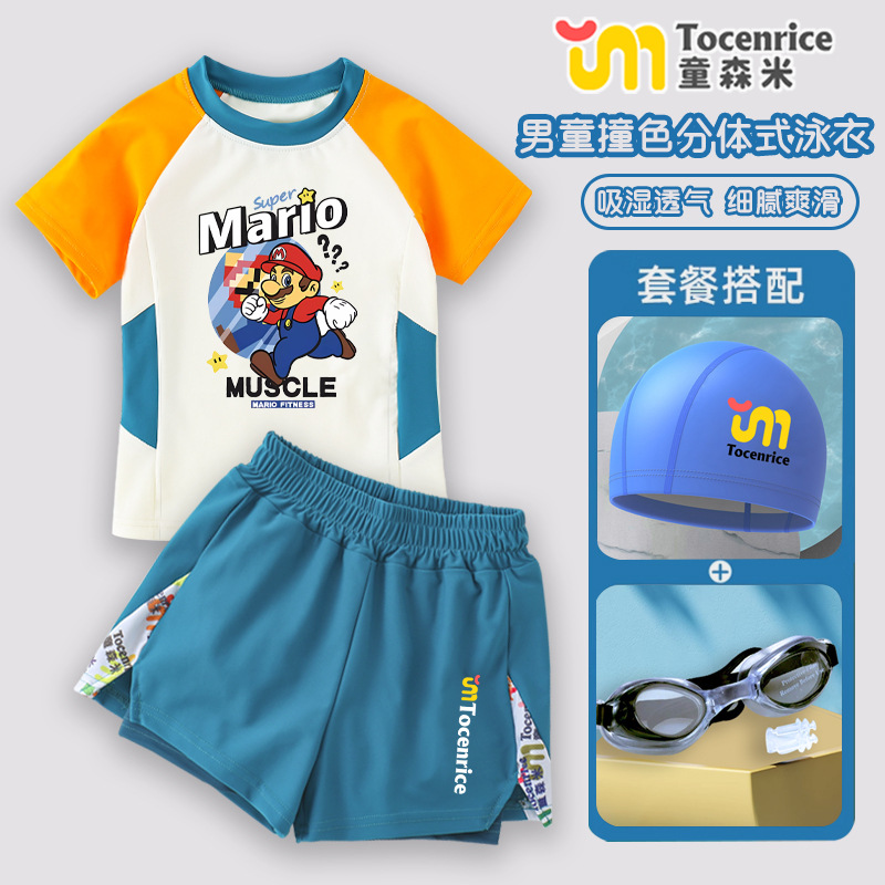 슈퍼 마리오 수영복 소년 여름 아기 태양 보호 빠른 건조 분할 수영 트렁크 큰 아이 잘 생긴 세트스토어 가기