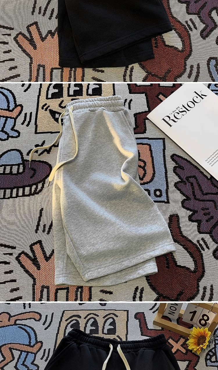 순면 스웨트팬츠 남성용 반바지 루즈핏 일반 5부 팬츠 농구 피트니스 땀흡수 통기성 얇은 여름