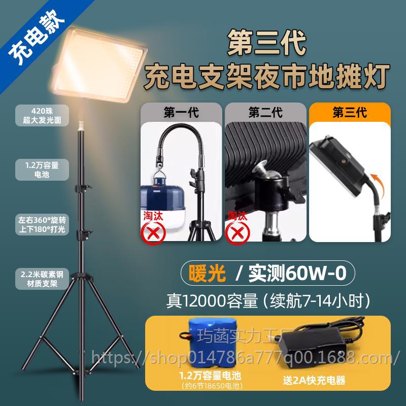• [충전-따뜻한 빛] 진정한 60W★실제 12000mA★배터리 수명 7~14시간 + 스탠드 2.2m개