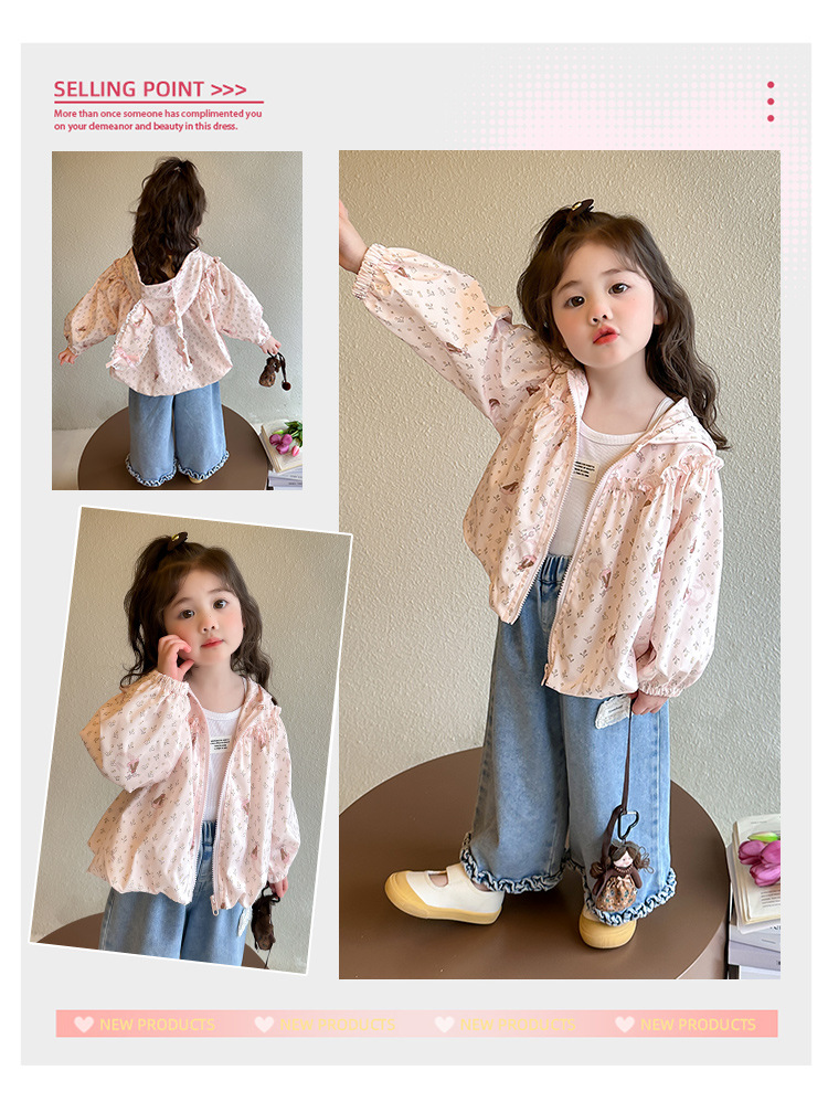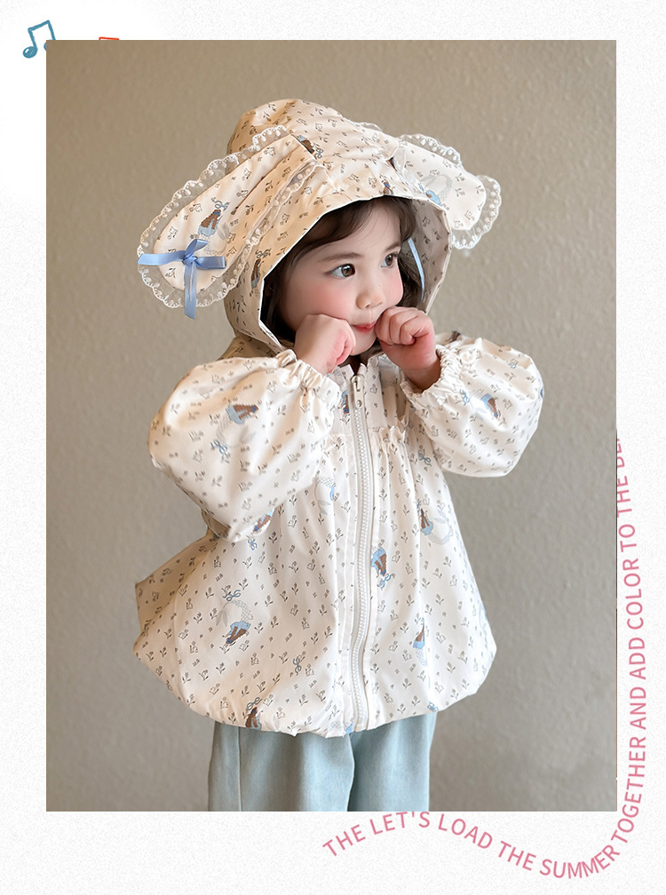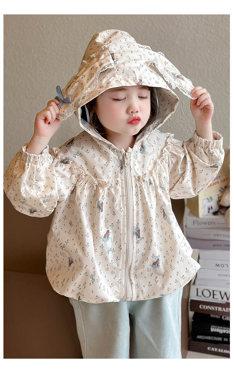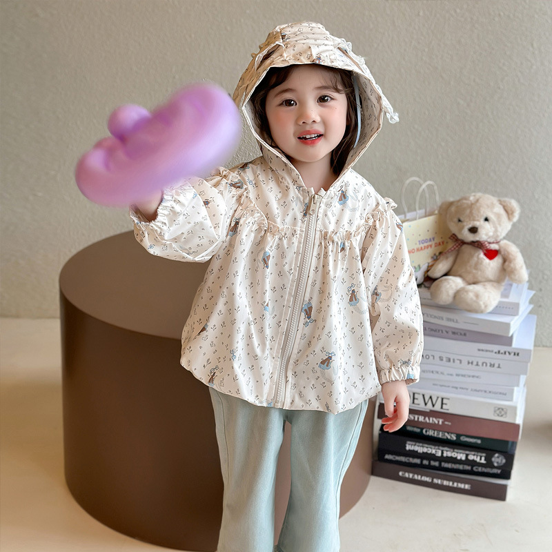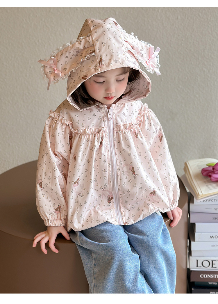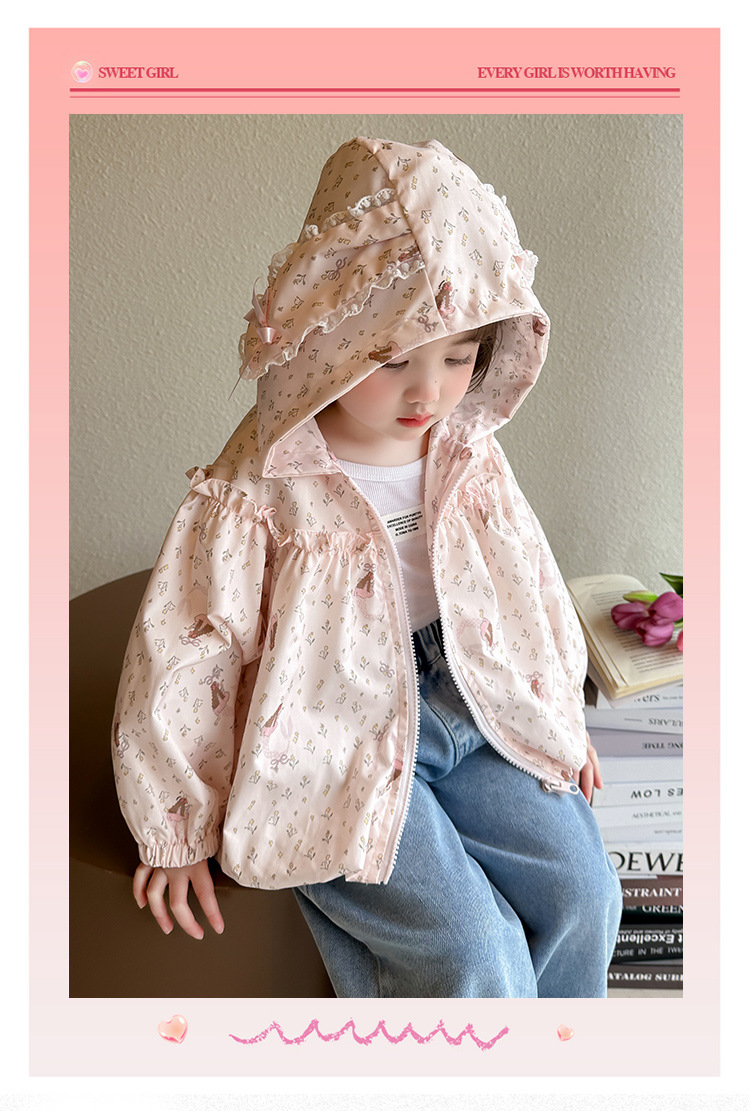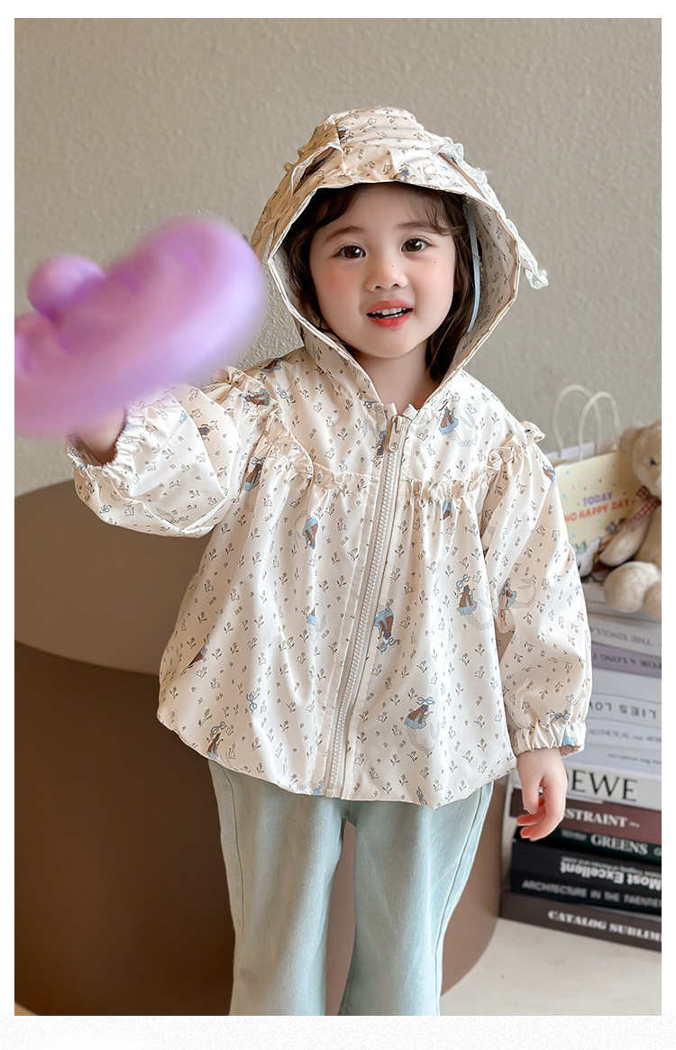 소녀 봄 서양식 꽃 자켓 2025 새로운 어린이 캐주얼 후드 탑 어린이 아기의 봄과 가을 재킷