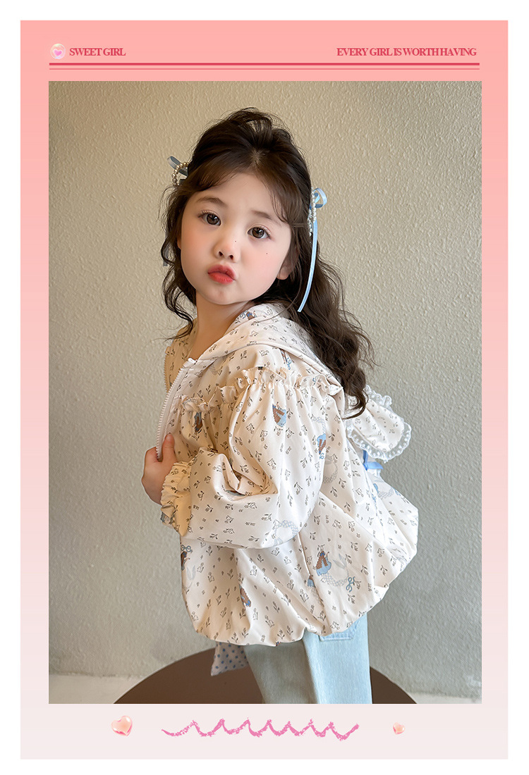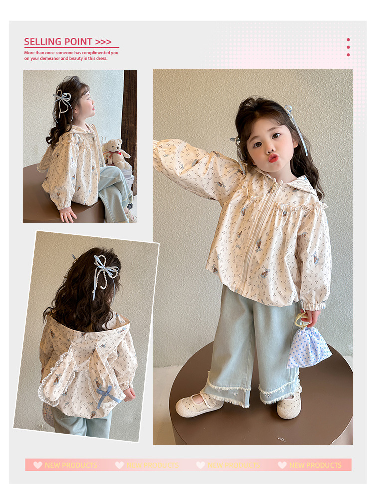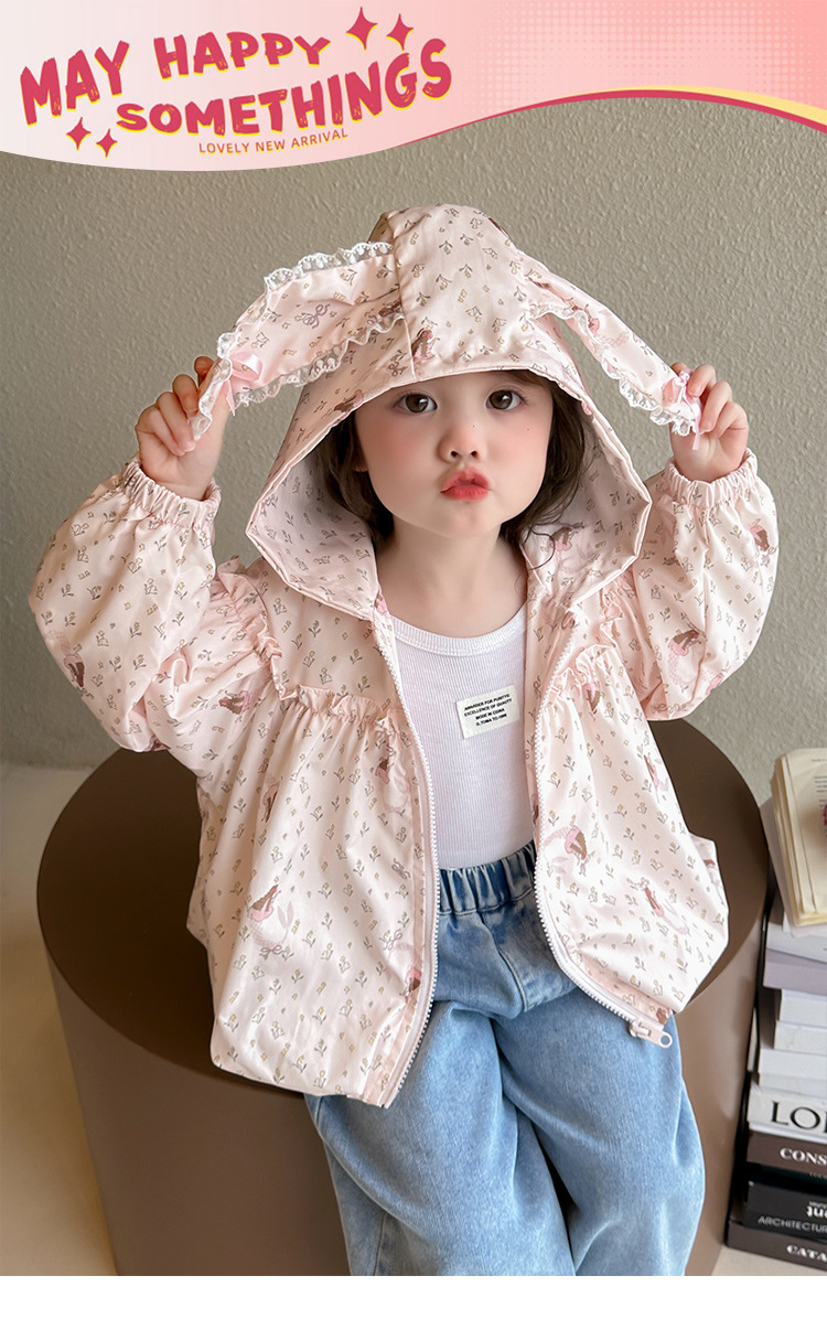 소녀 봄 서양식 꽃 자켓 2025 새로운 어린이 캐주얼 후드 탑 어린이 아기의 봄과 가을 재킷스토어 가기