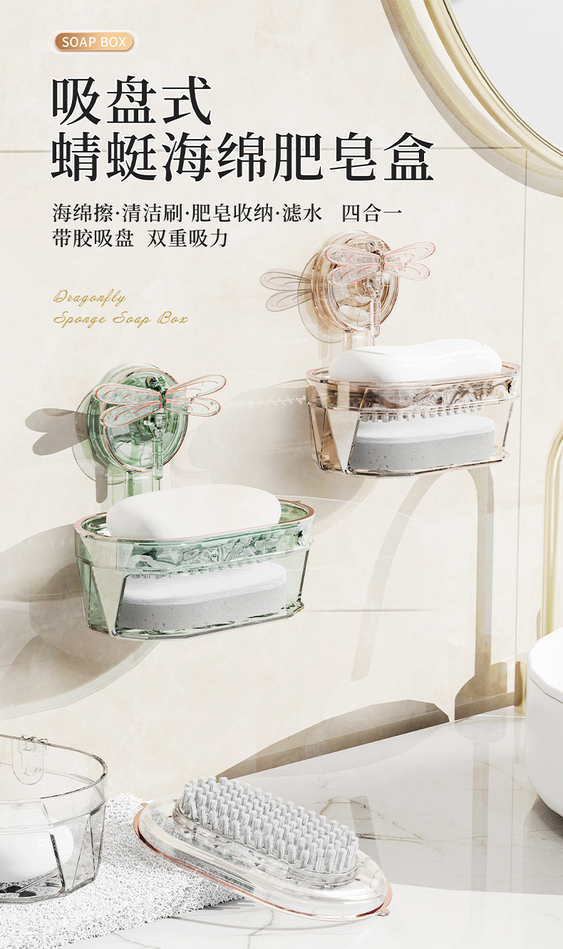 가벼운 럭셔리 창조적 인 잠자리 흡입 컵 비누 상자 펀치없는 가정용 욕실 벽 장착 비누 보관 랙스토어 가기