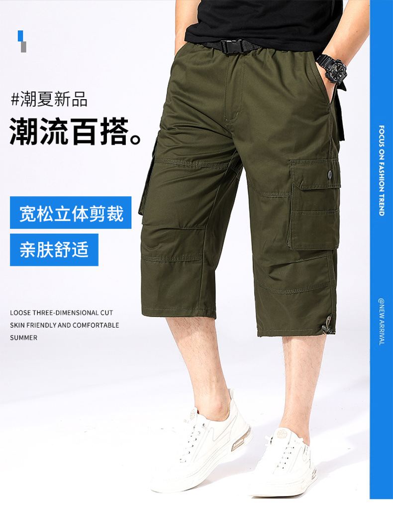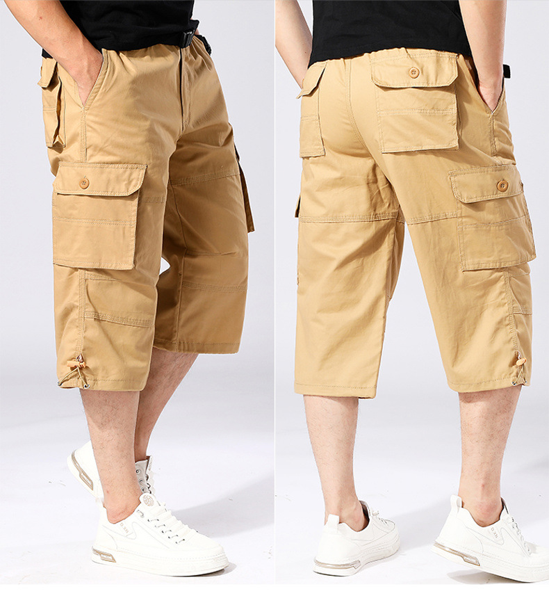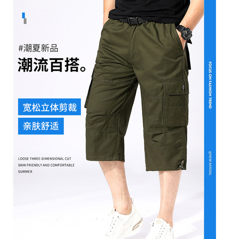 남성용 카프리 바지 여름 트렌디 스포츠 남자 순면 느슨한 직선 캐주얼 바지 십대 남성 반바지스토어 가기