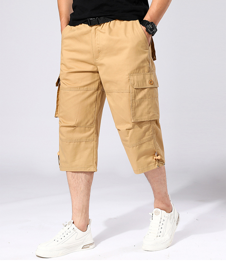 남성용 카프리 바지 여름 트렌디 스포츠 남자 순면 느슨한 직선 캐주얼 바지 십대 남성 반바지