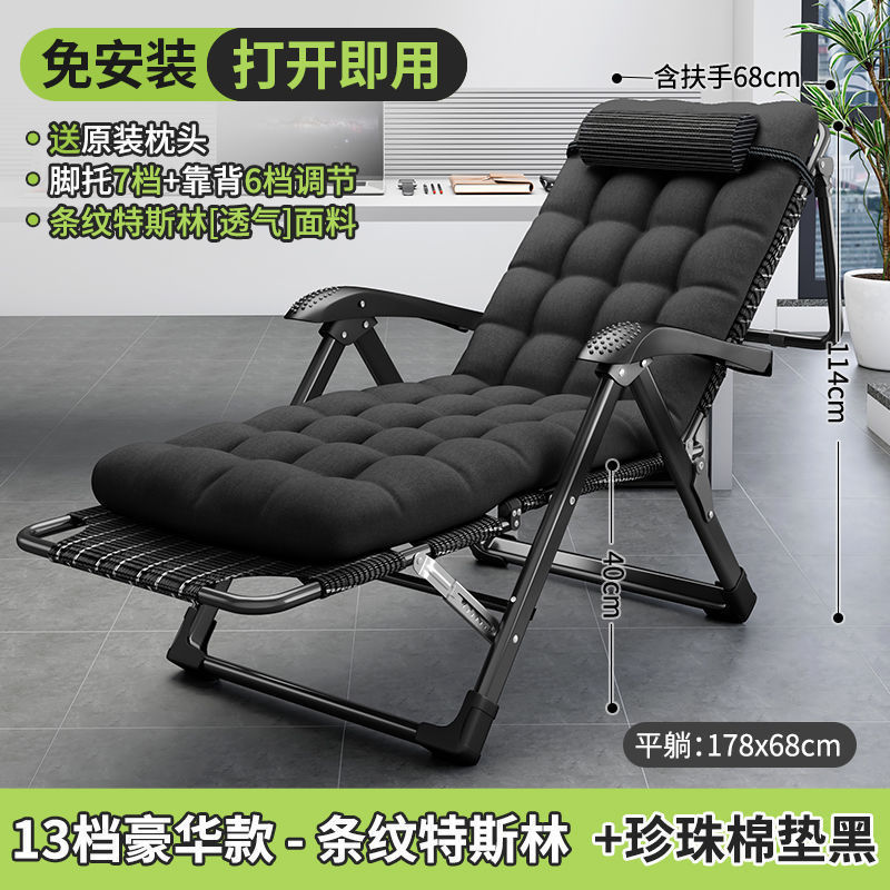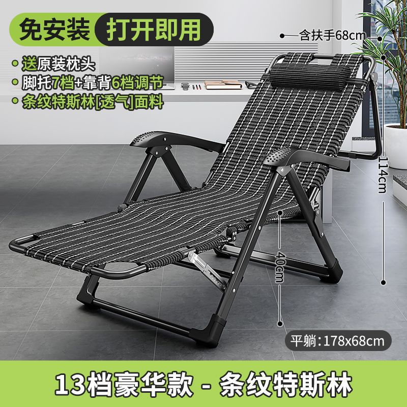 • 럭셔리 모델 [특허 13단계] 스트라이프 천 + 통기성 쿠션 블랙, 개봉 후 바로 사용 가능, 평평하게 눕혀서 잠잘 수 있음, 다단계 조절 가능