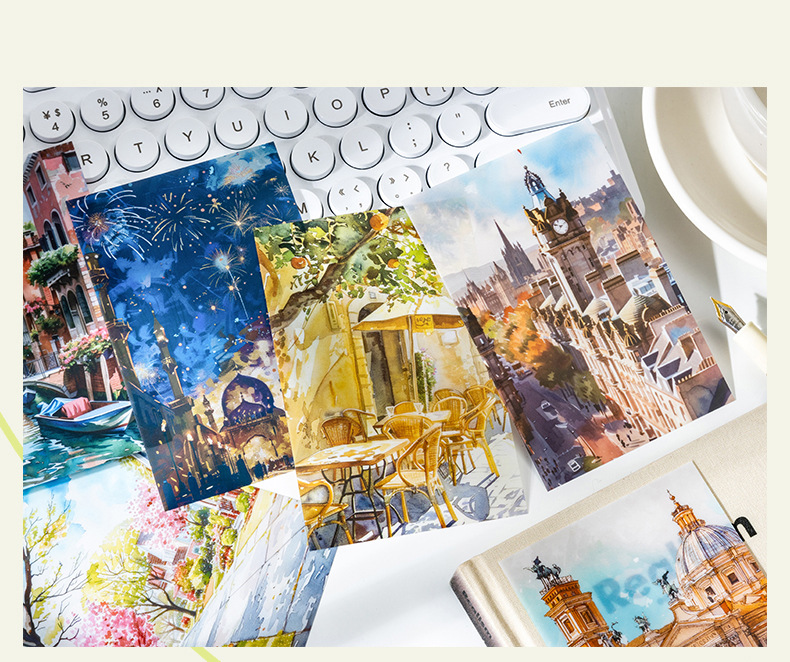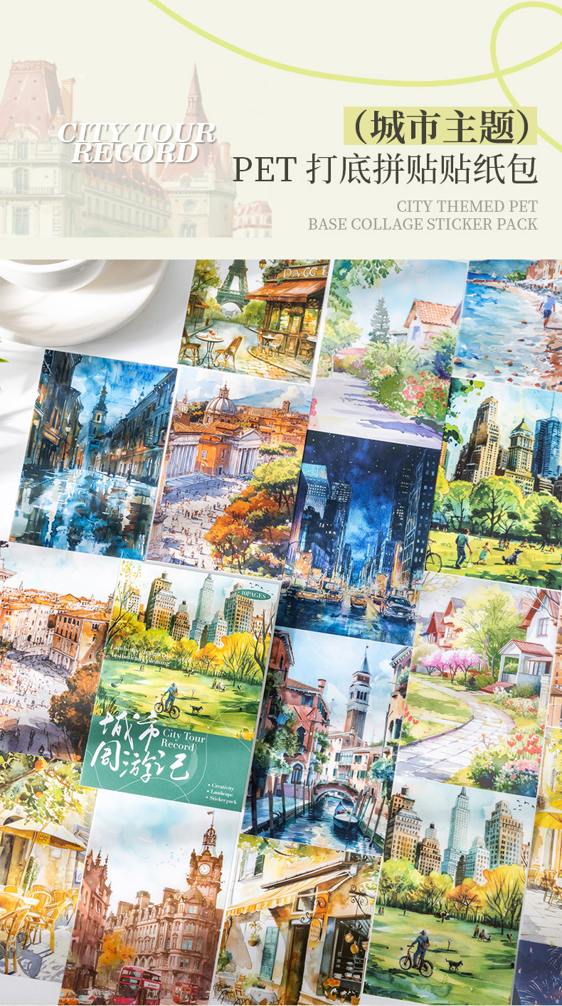 도시 주간 여행 노트 대형 소재 애완 동물 스티커 손으로 그린 바람 공원 스트리트 뷰 핸드북 콜라주 풍경 장식