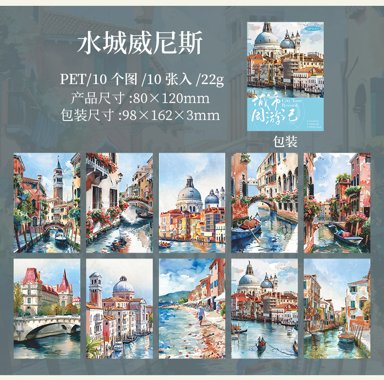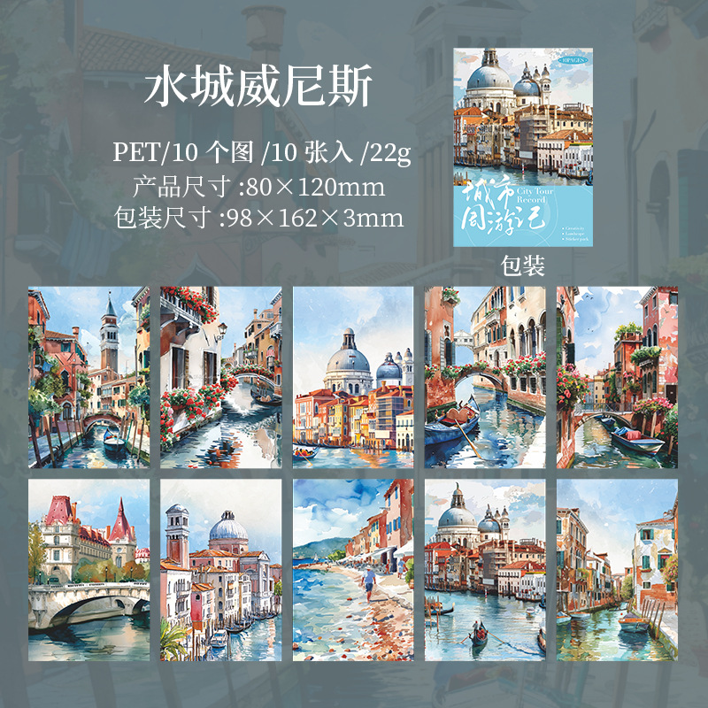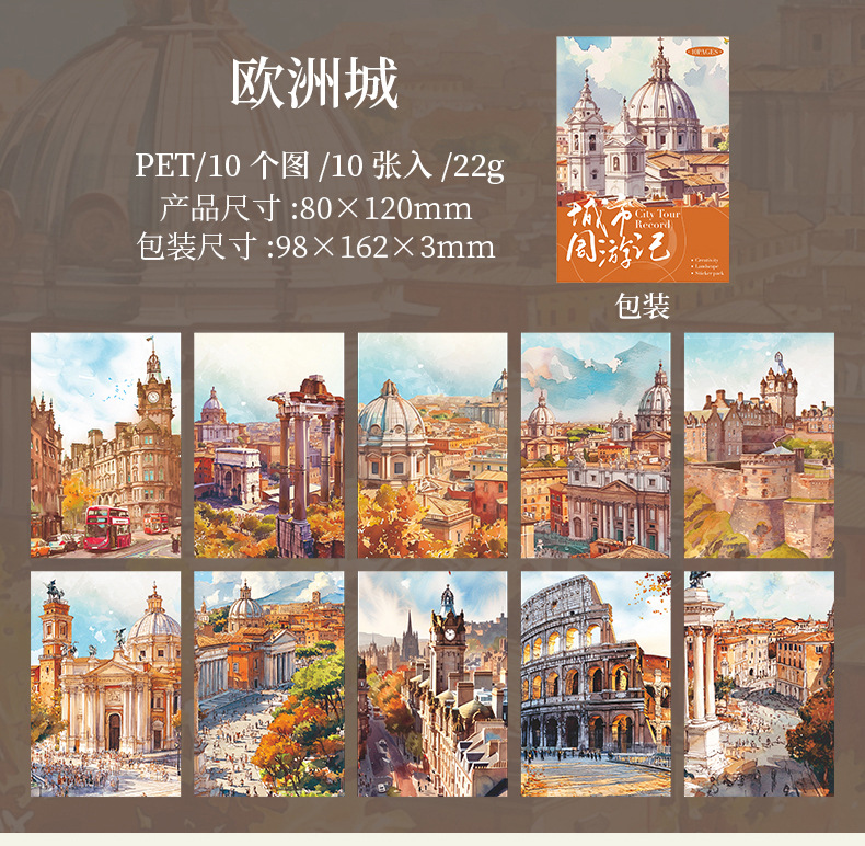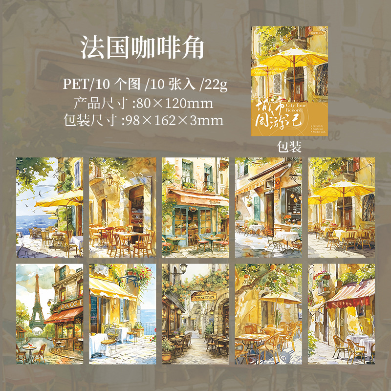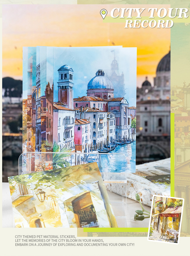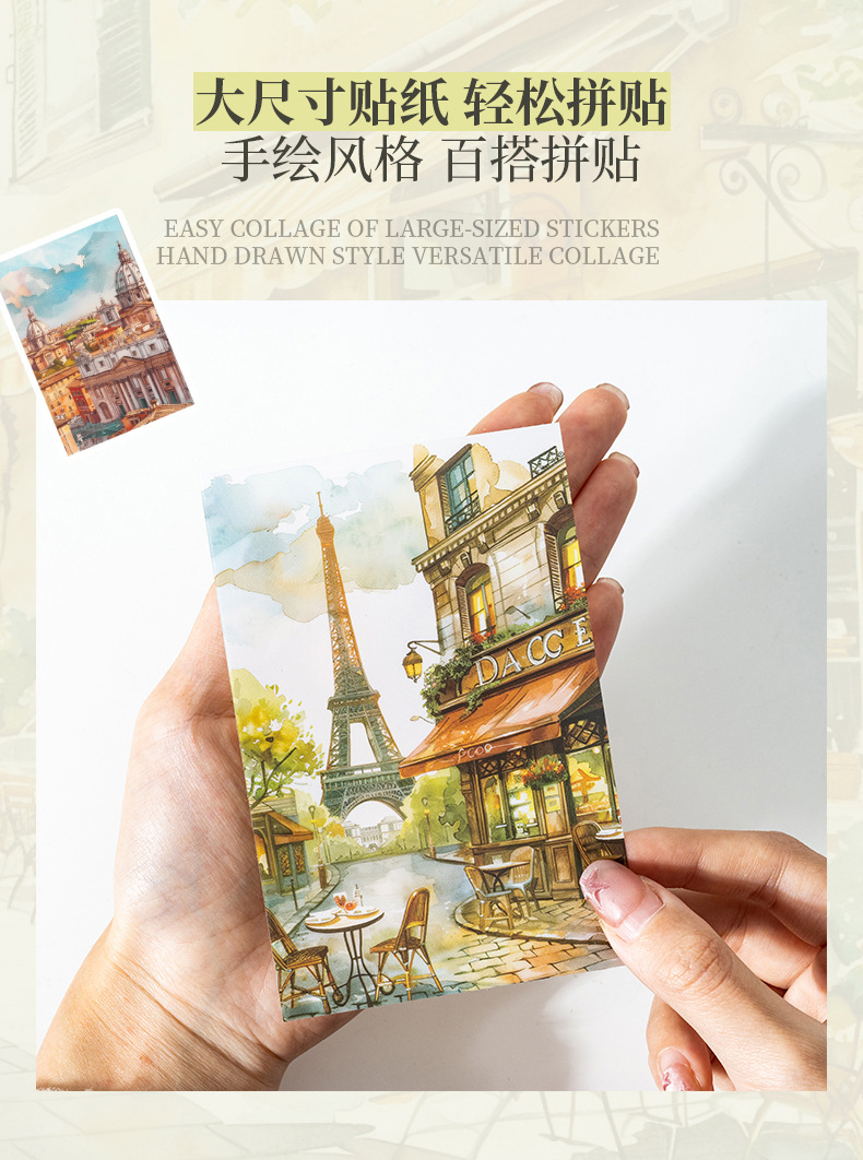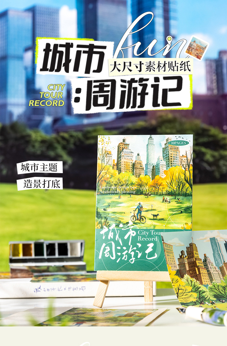 도시 주간 여행 노트 대형 소재 애완 동물 스티커 손으로 그린 바람 공원 스트리트 뷰 핸드북 콜라주 풍경 장식스토어 가기