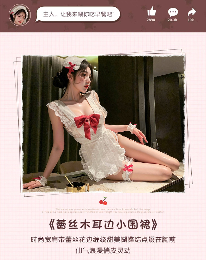 시 메이샤: 사랑의 앞치마 메이드 섹시한 속옷 세트 제복 성인 섹시한 잠옷 머리에 대한 순수한 욕망