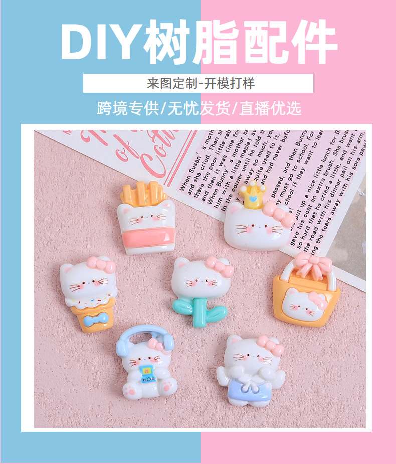 어린이 재미와 변경 고양이 크림 접착제 만화 DIY 수제 헤어핀 냉장고 소재 수지 액세서리 도매스토어 가기