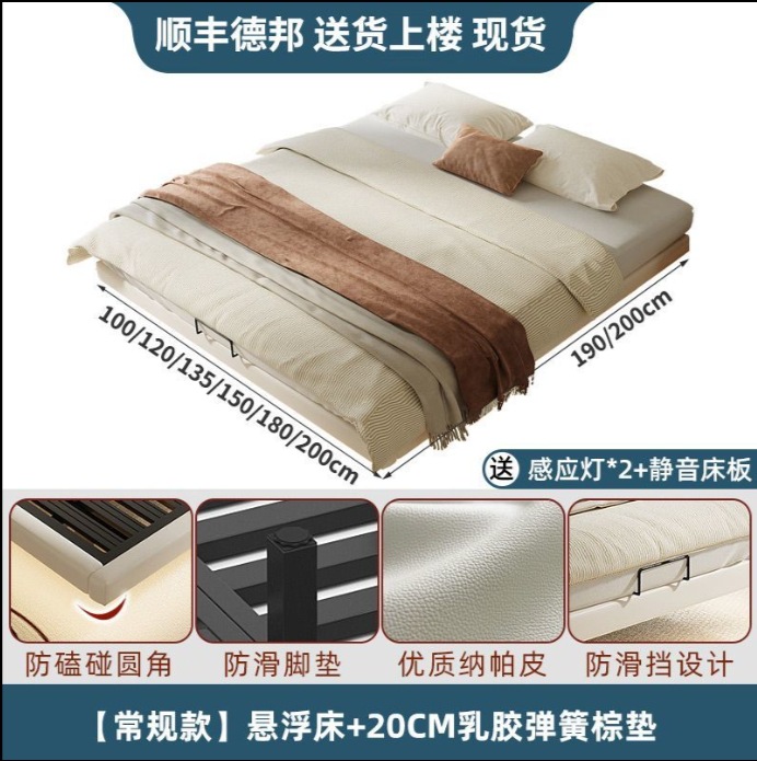 • 흰색 소프트 패키지 침대 [20cm 라텍스 스프링 매트리스] 조명 포함