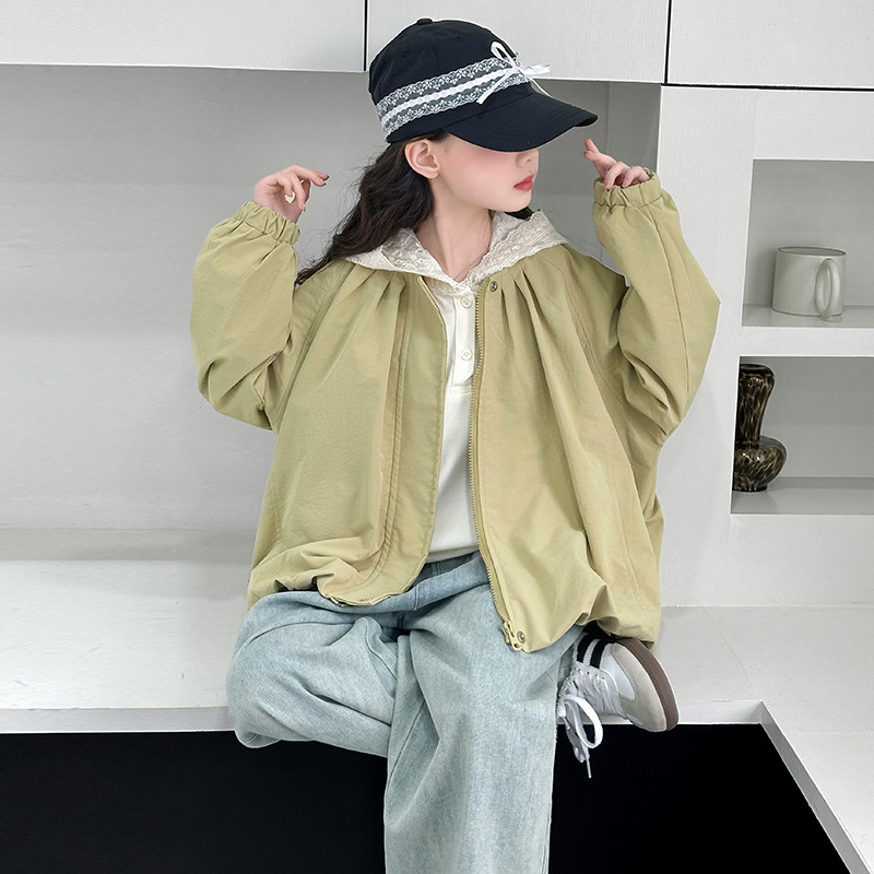소녀 봄 코트 2025 새로운 큰 어린이 패션 후드 어린이 봄 캐주얼 재킷 짧은 코트