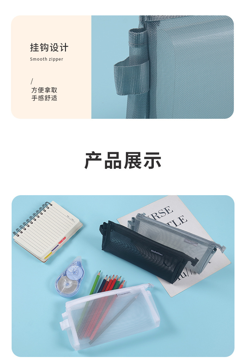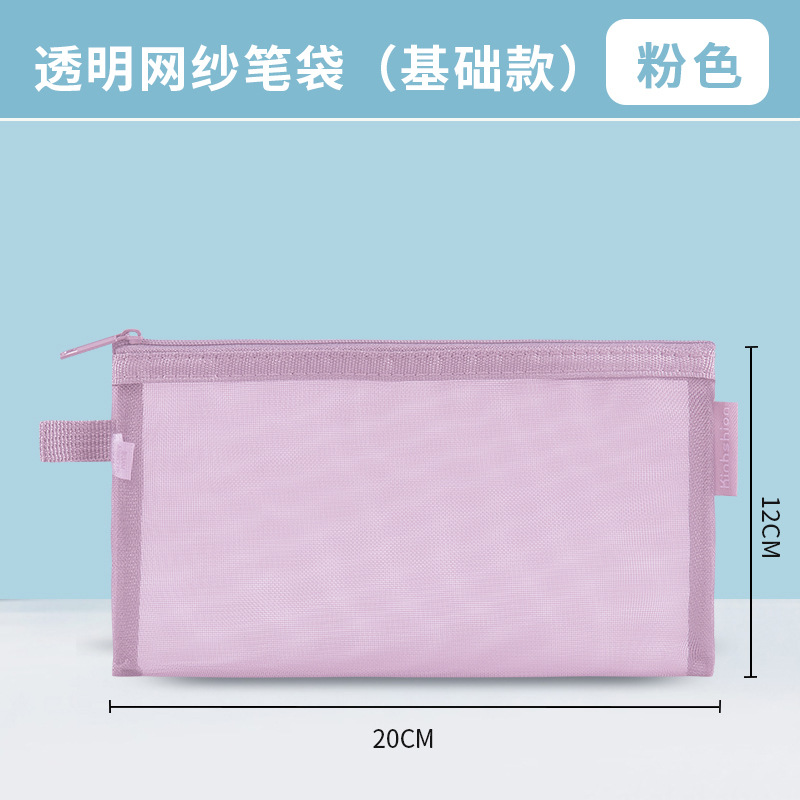 간단한 투명한 내부 연필 가방 메쉬 보관 가방 학생 시험 A6 연필 가방 작은 신선한 사탕 색깔