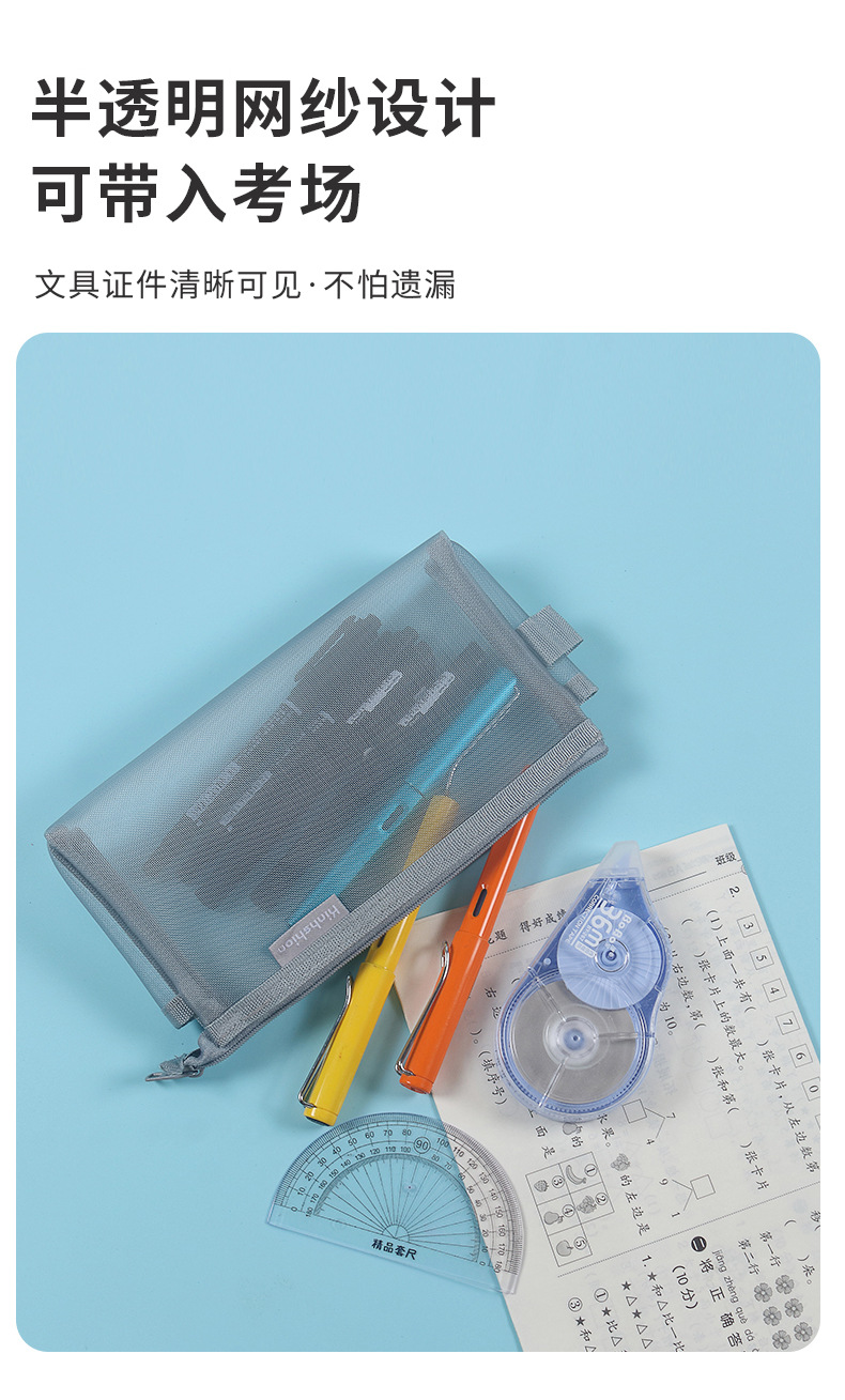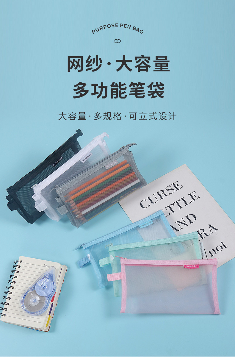 간단한 투명한 내부 연필 가방 메쉬 보관 가방 학생 시험 A6 연필 가방 작은 신선한 사탕 색깔스토어 가기
