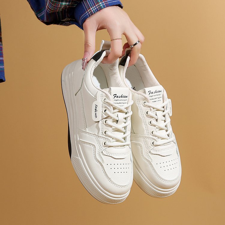 2025 봄 흰색 신발 새로운 한국 스타일 Ins 여성 학생 강화 플랫폼 스포츠 보드 신발 캐주얼 싱글 레이어 신발스토어 가기