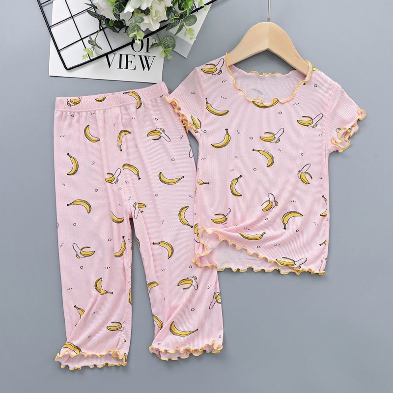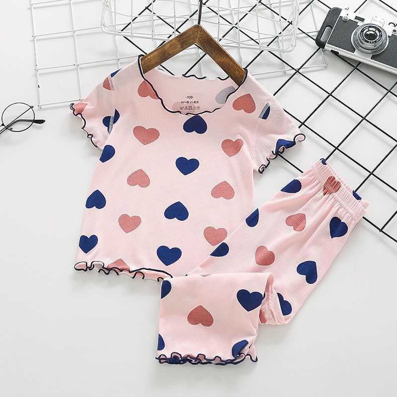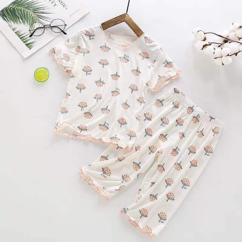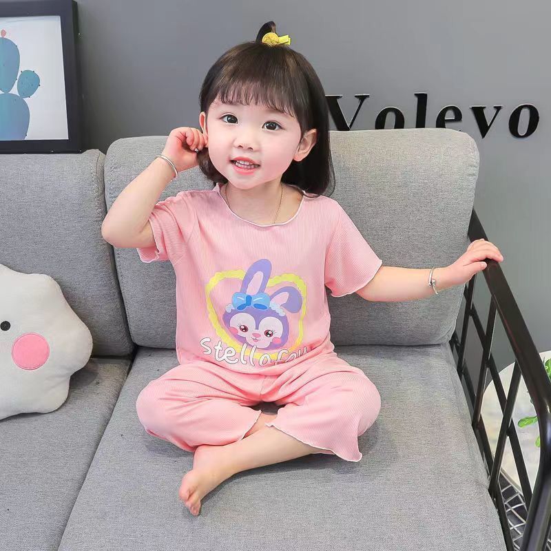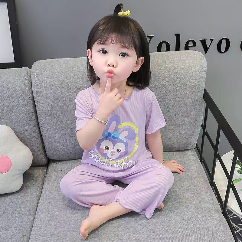 소녀 잠옷 여름 얇은 여름 투피스 홈 의류 에어컨 아이스 실크 스레드 보물 반팔 세트 어린이 세트스토어 가기
