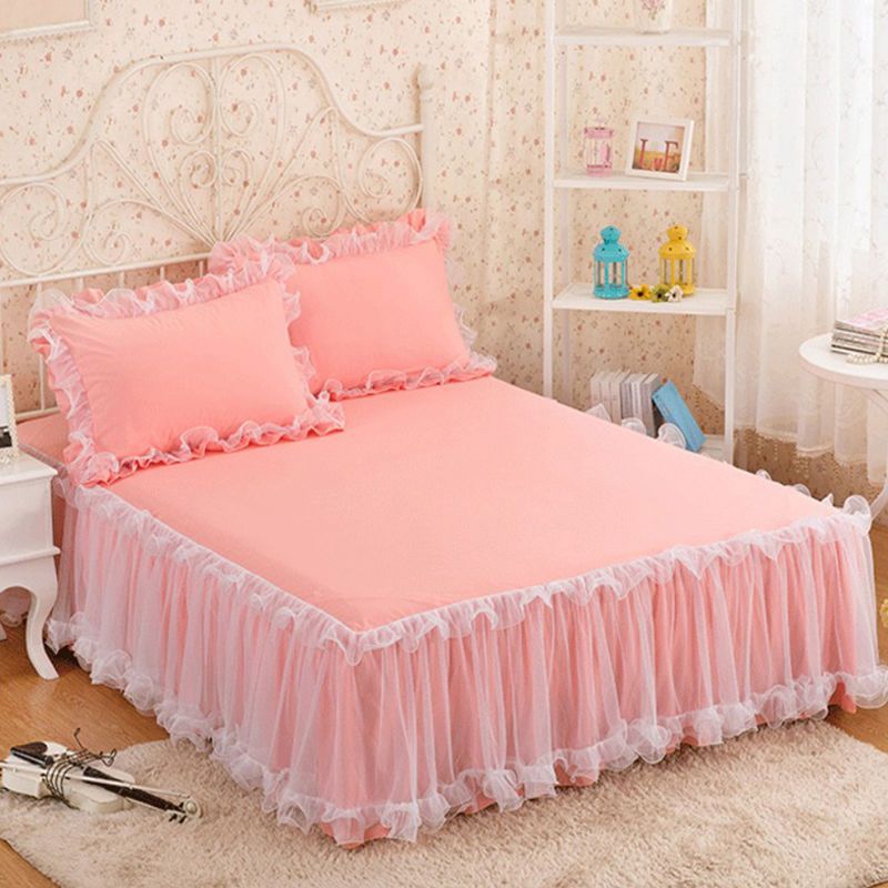 여름 레이스 침대 스커트 3 피스 세트 공주 스타일 침대 커버 두꺼운 매트리스 미끄럼 방지 침대 커버 모든 포함 침대 시트 단일 조각스토어 가기