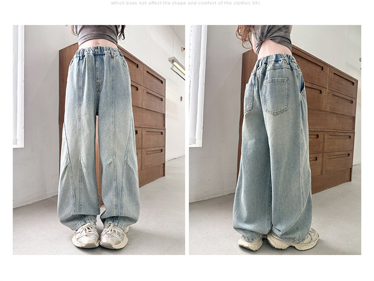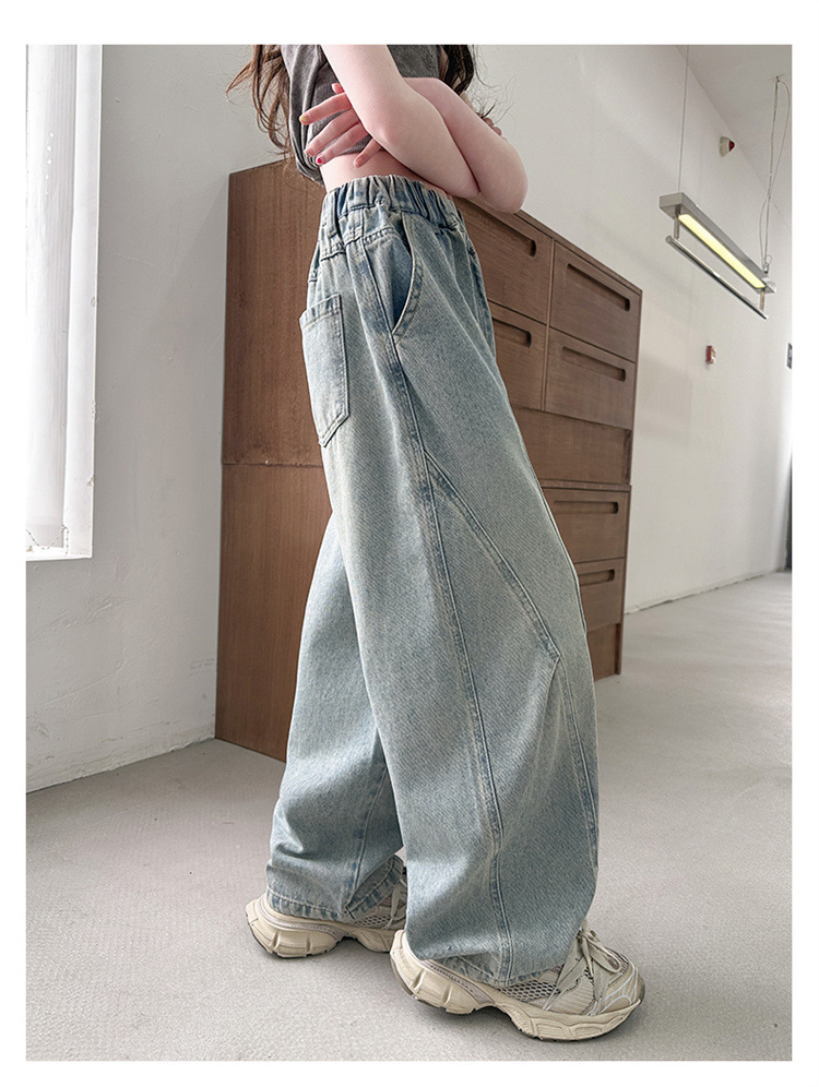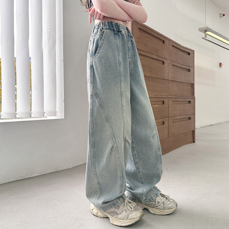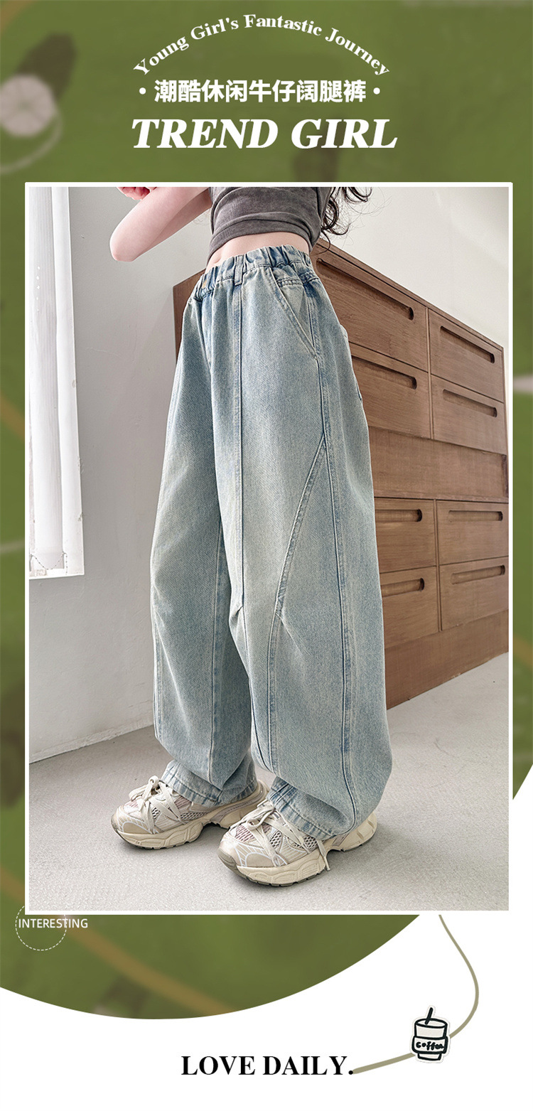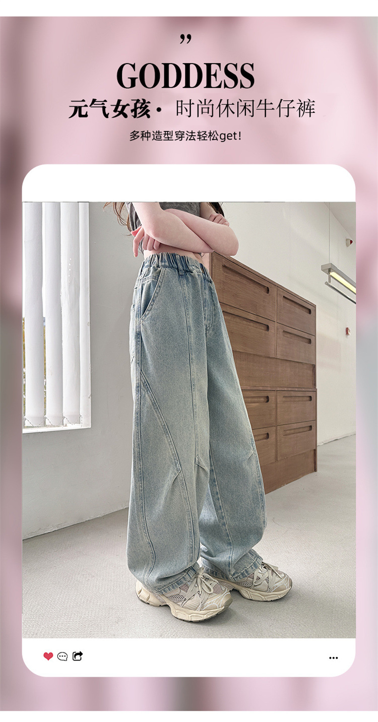 여자 바지 봄 한국 스타일 어린이 서양식 올매치 소녀 스트레이트 루스 데님 마체테 바지 유행 후 저우 질리스토어 가기