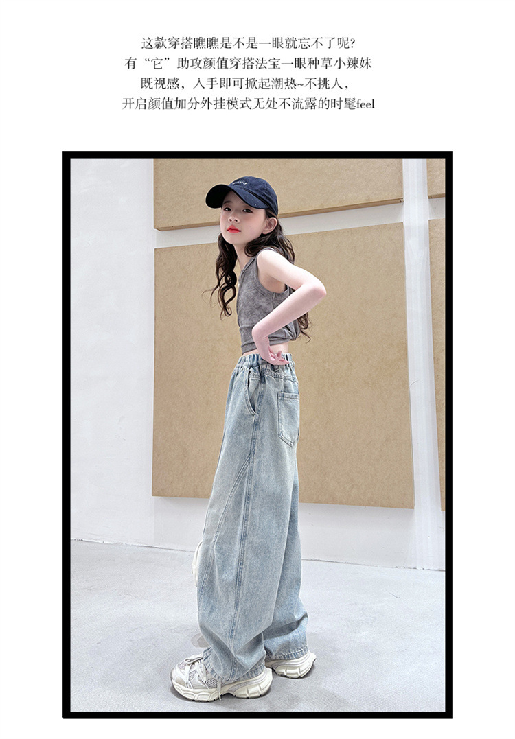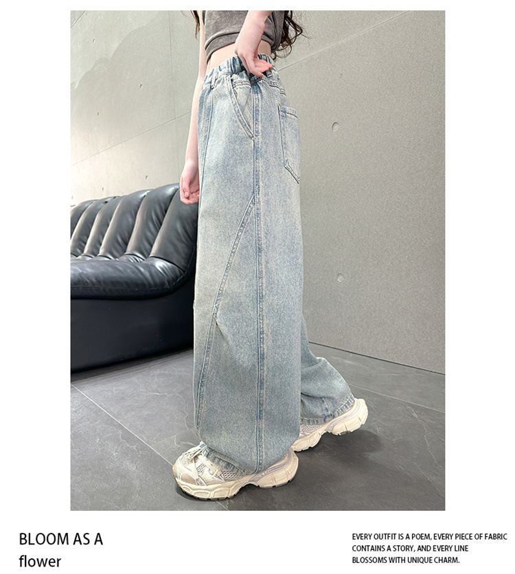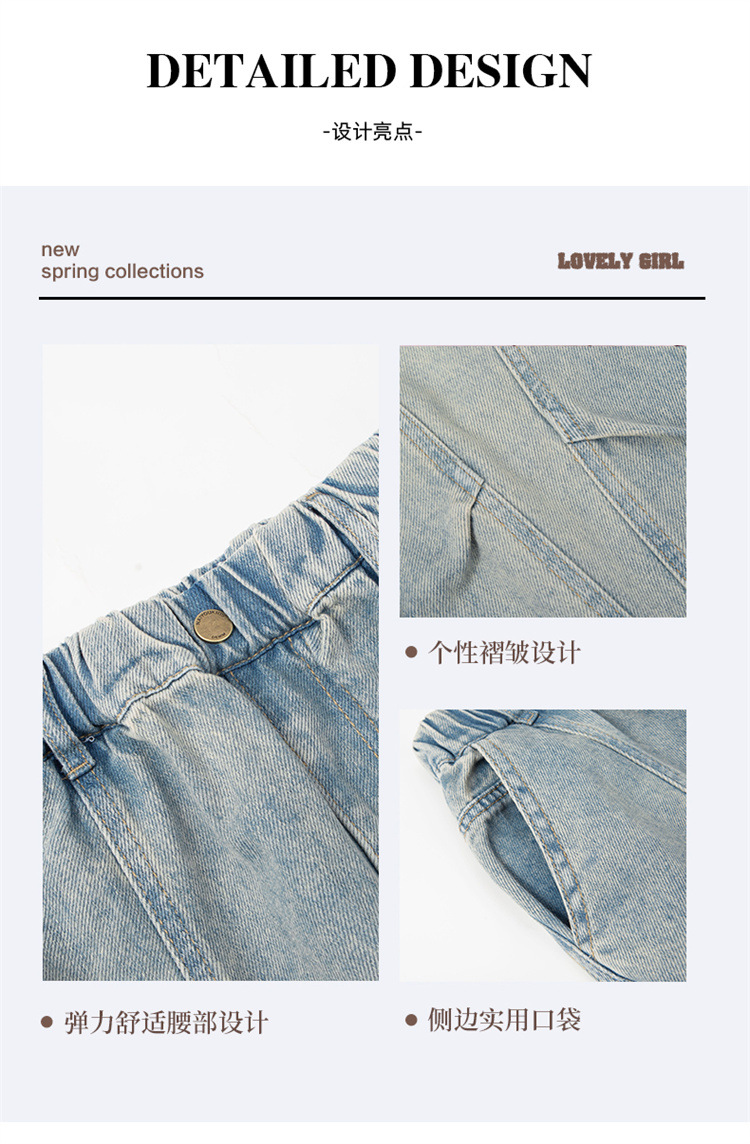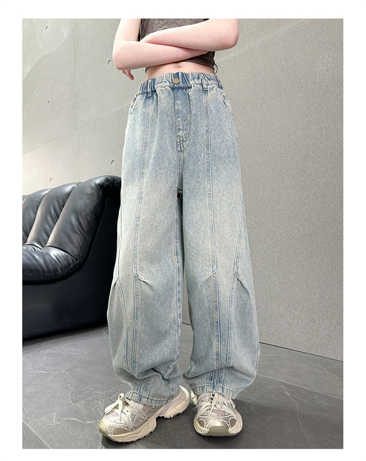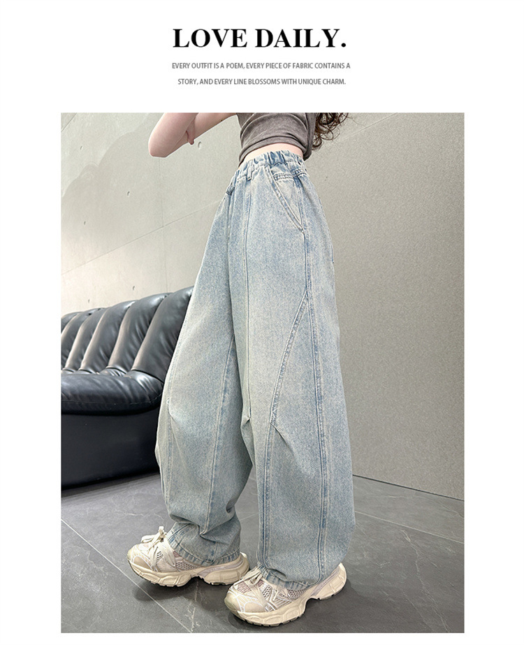 여자 바지 봄 한국 스타일 어린이 서양식 올매치 소녀 스트레이트 루스 데님 마체테 바지 유행 후 저우 질리스토어 가기