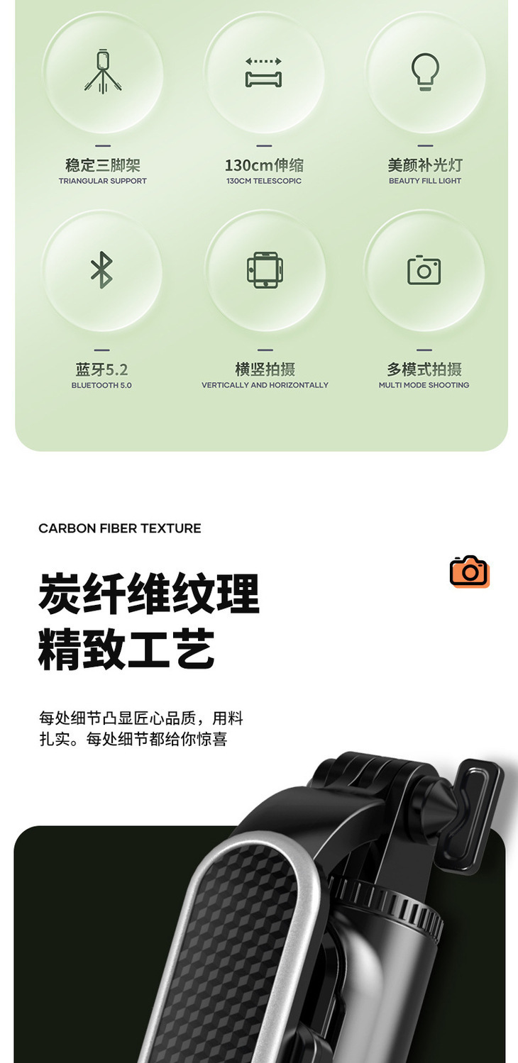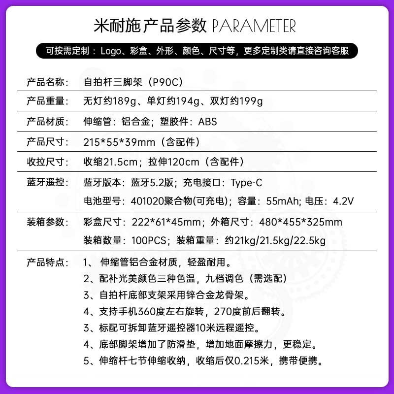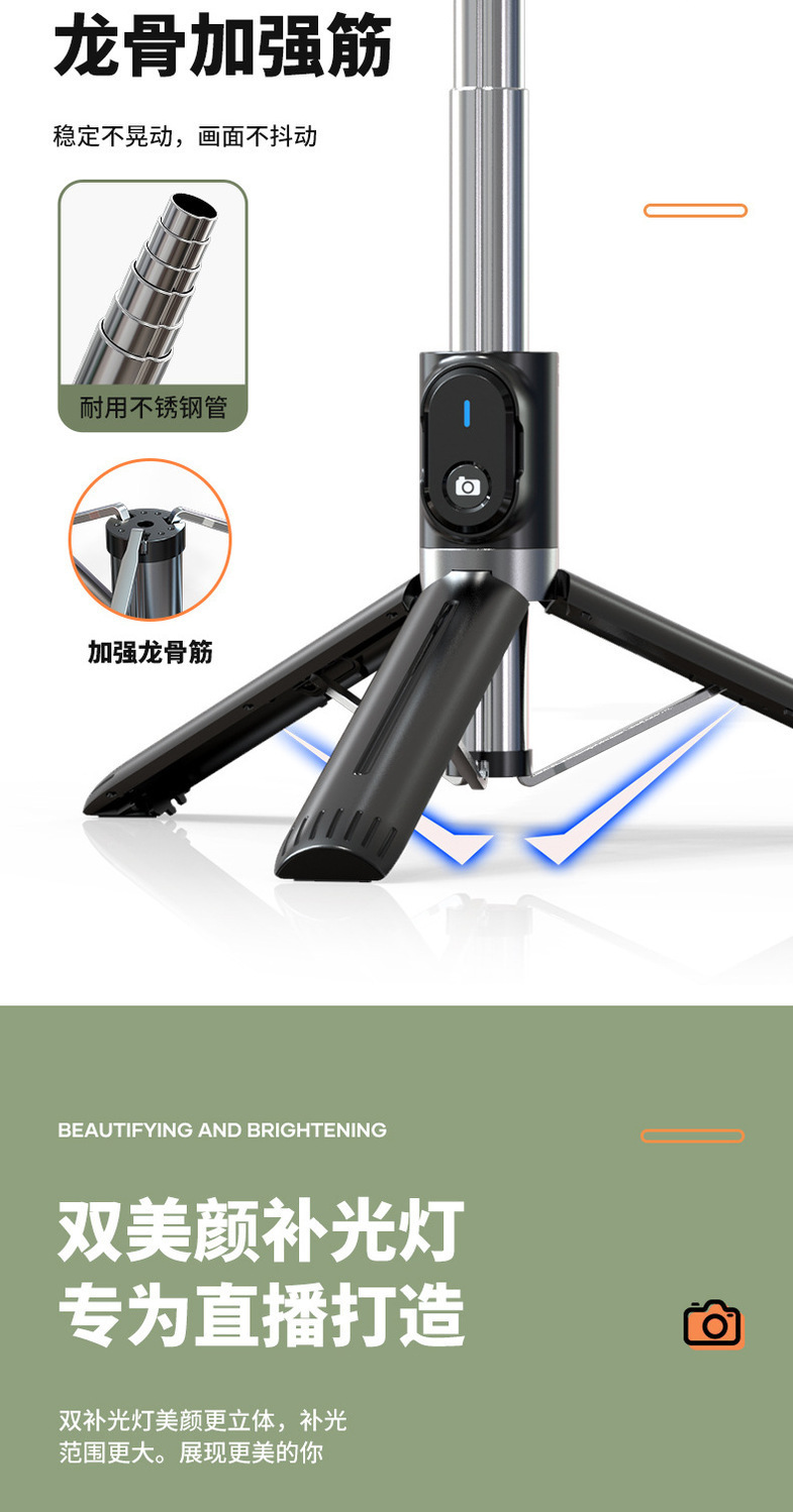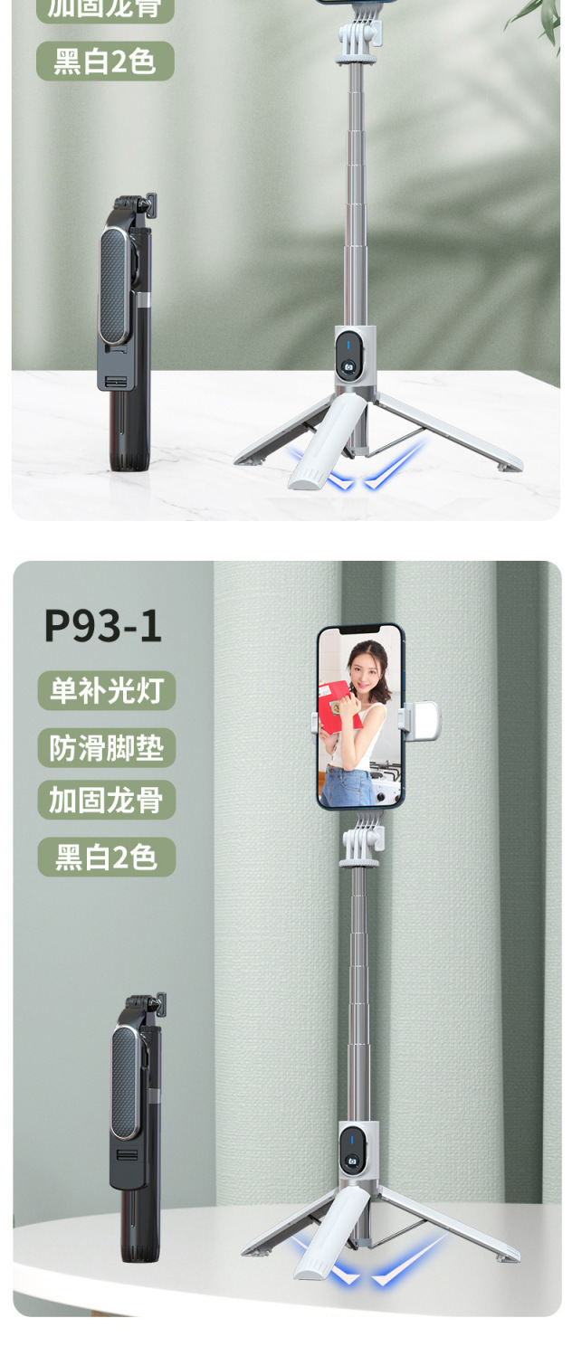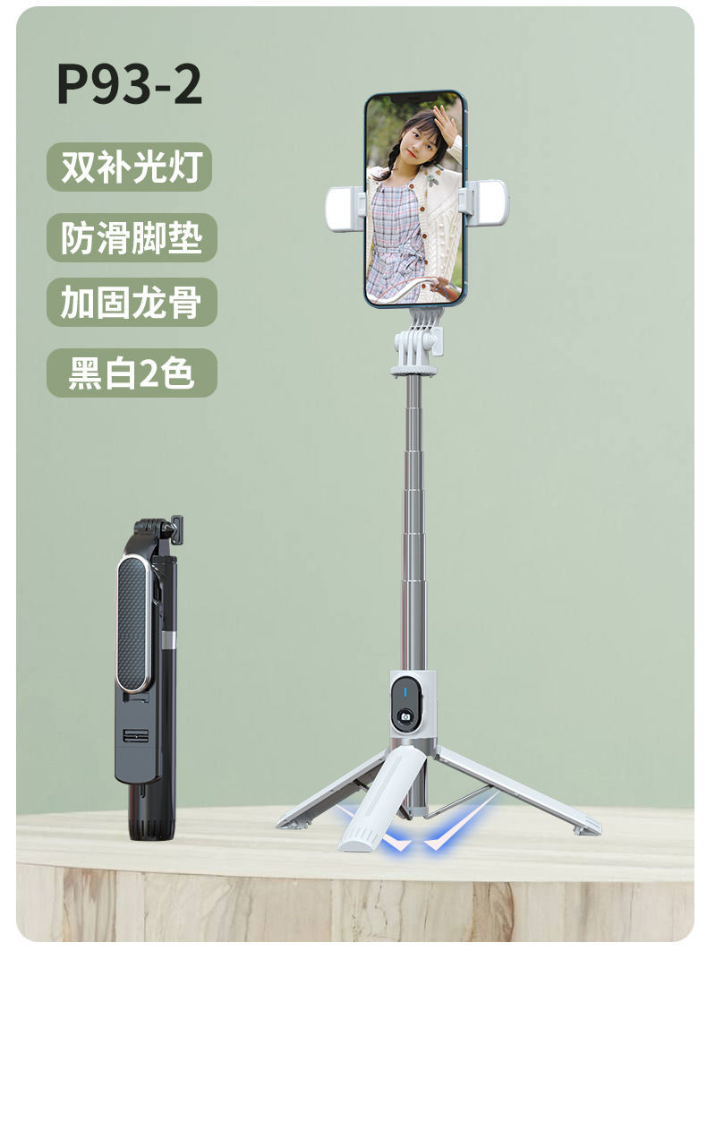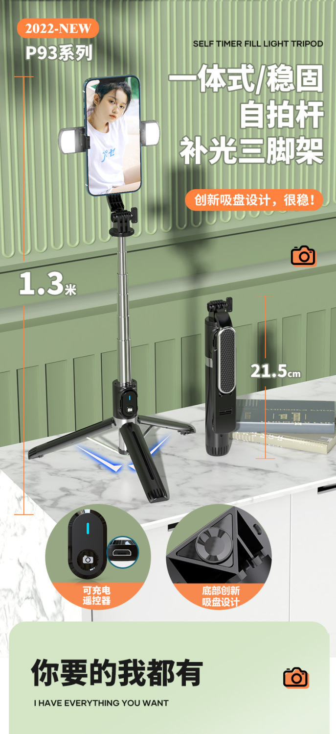 새로운 P93C 셀카 스틱 1.3 m 지속 뷰티 라이트 휴대 전화 브래킷 라이브 셀카 블루투스 셀카 스틱스토어 가기