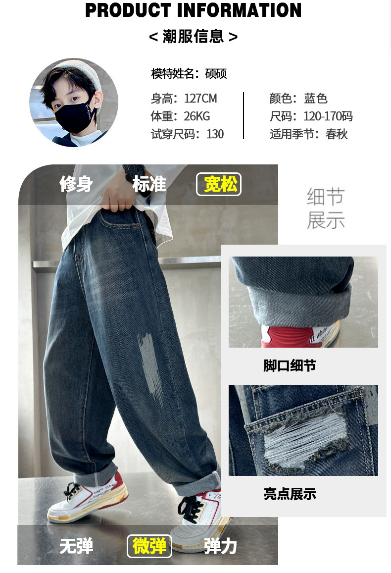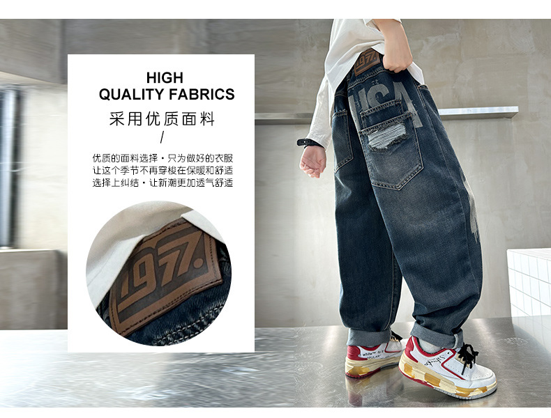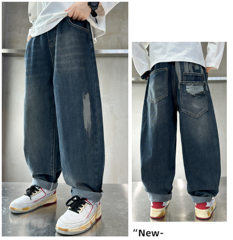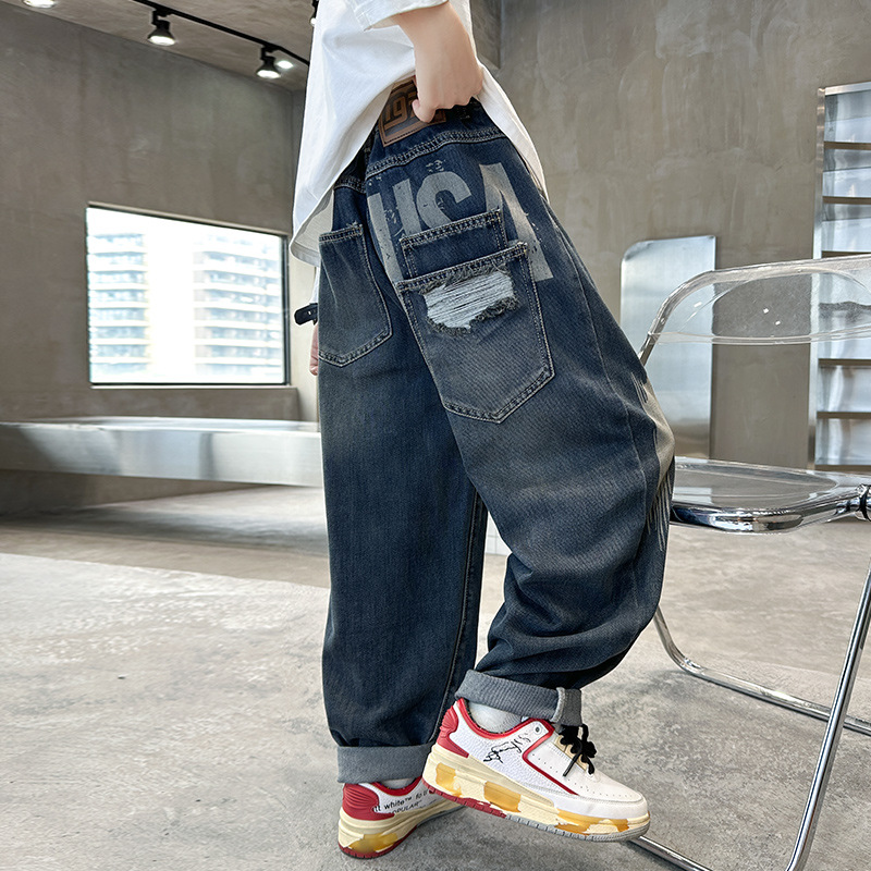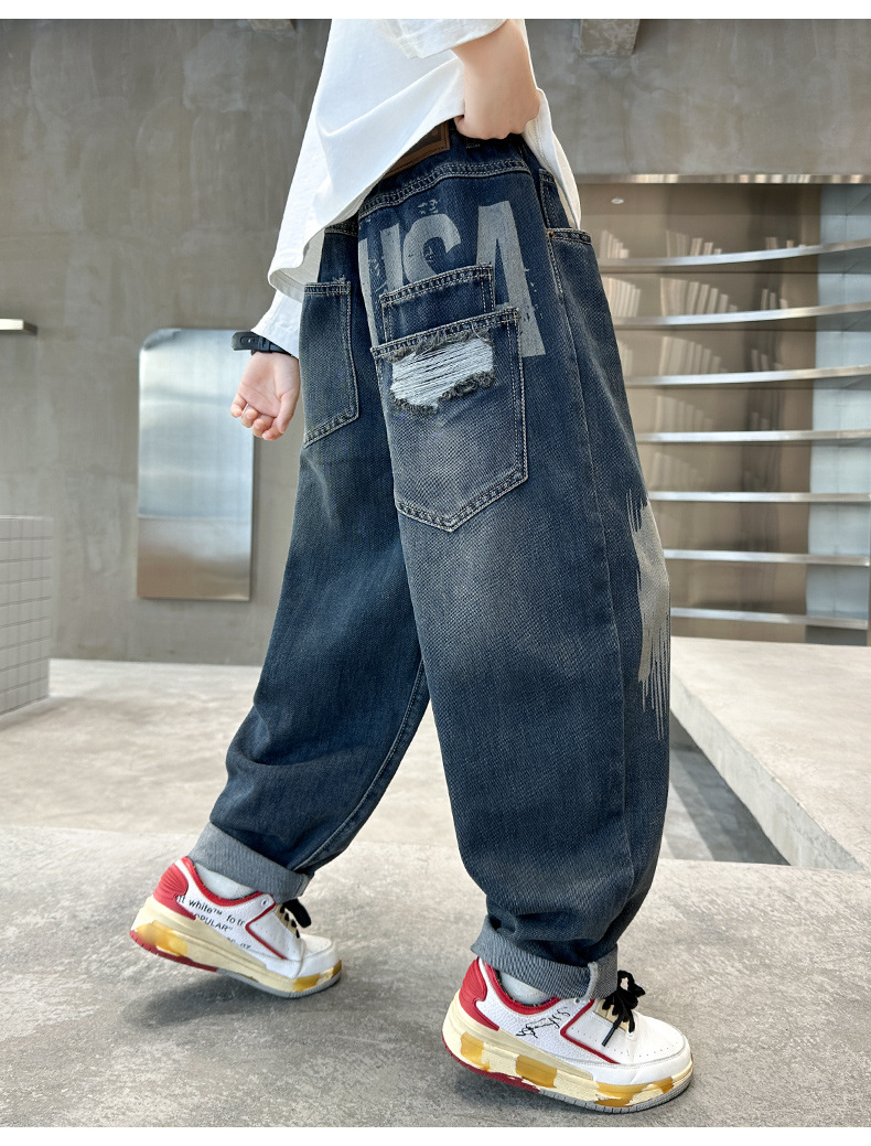 소년 청바지 모래 세척 패션 2025 봄 새로운 데님 바지 크메르 바지 카운터 품질 올 매치스토어 가기