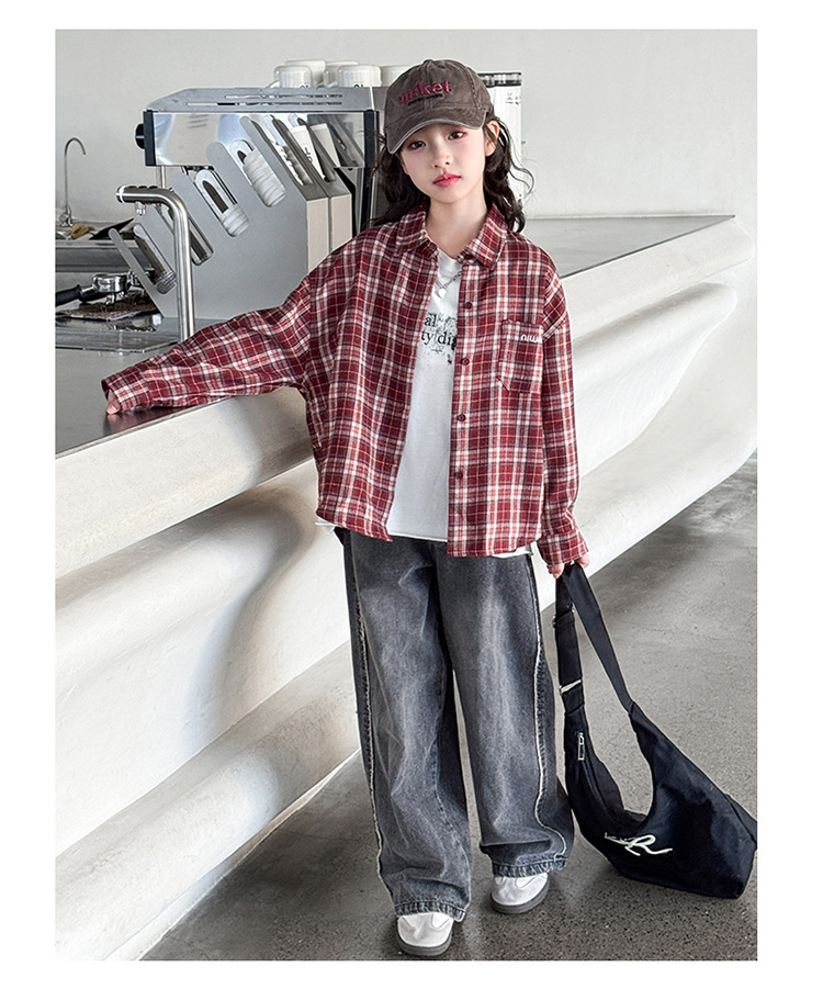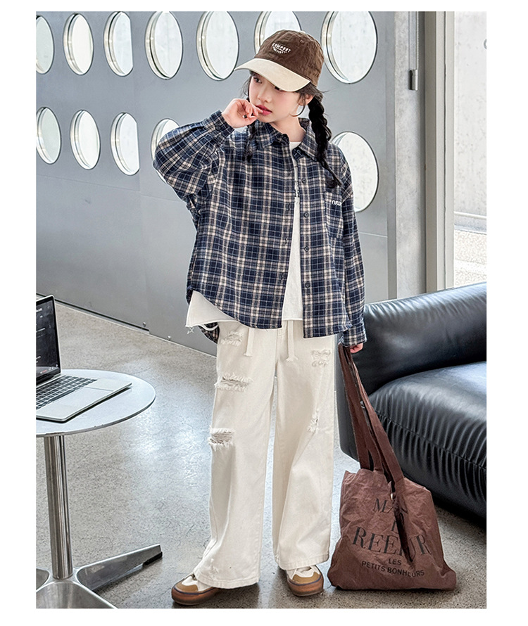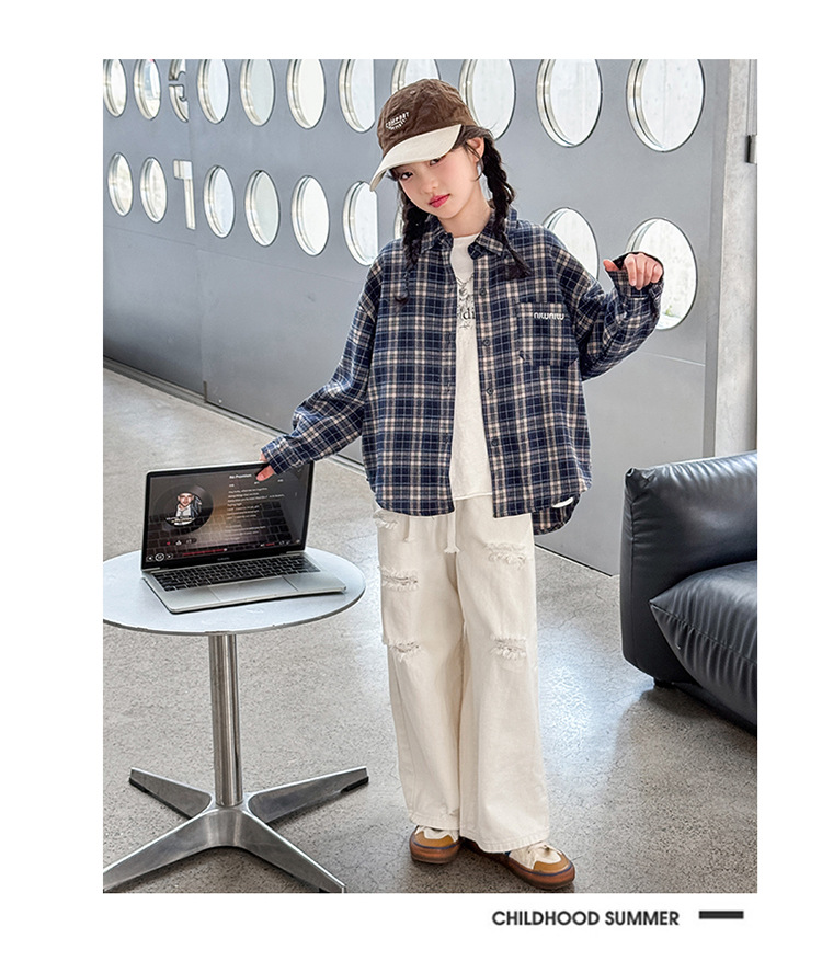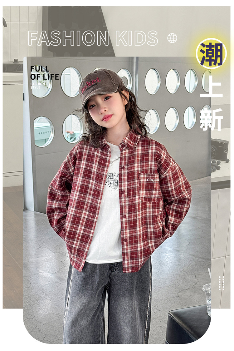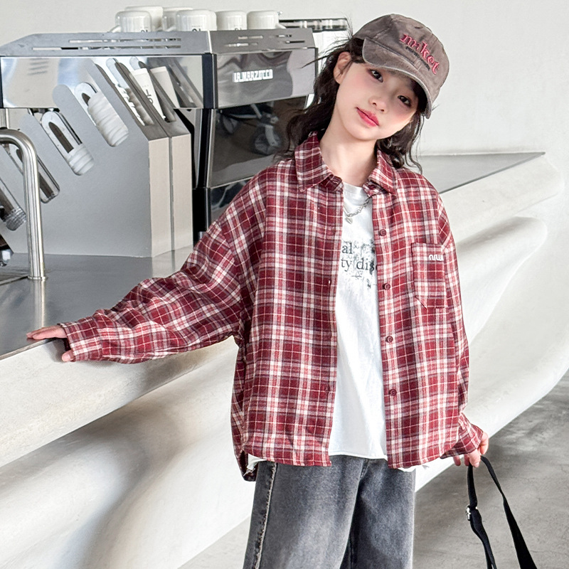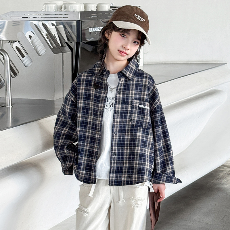소녀 봄 격자 무늬 셔츠 코트 2025 새로운 캐주얼 스포츠 어린이 재킷 큰 어린이 Treng 코트 봄과 가을스토어 가기