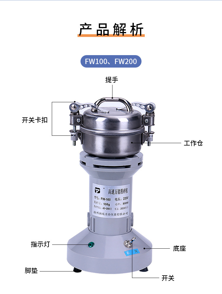 새로운 고속 유니버설 그라인더 작은 광석 토양 허브 식물 분쇄 FW80FW100 실험실스토어 가기