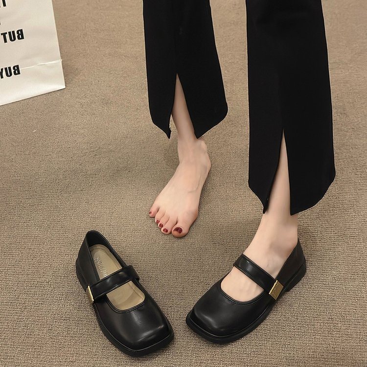 캐주얼 메리 제인 신발 여성 2024 기모 프렌치 레트로 다크 브라운 새로운 도착 신발 여성 플랫 스퀘어 발가락 한국 스타일스토어 가기