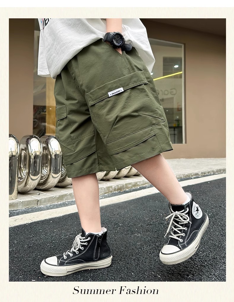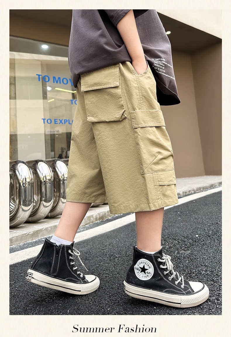 아동복 소년 여름 바지 반바지 2025 새로운 스타일 중대형 어린이 여름 여름 얇은 소년 작업복 바지스토어 가기