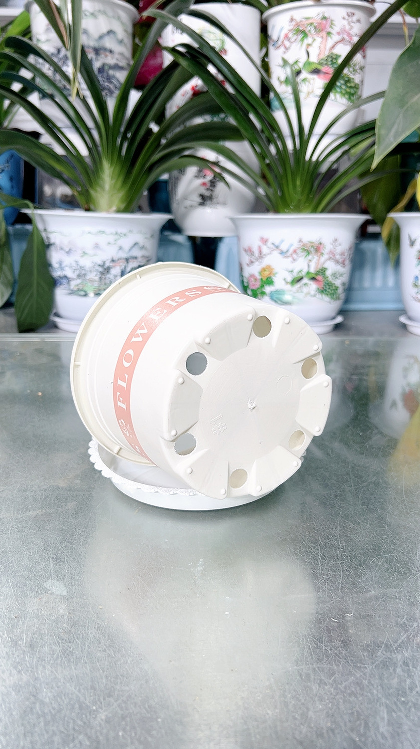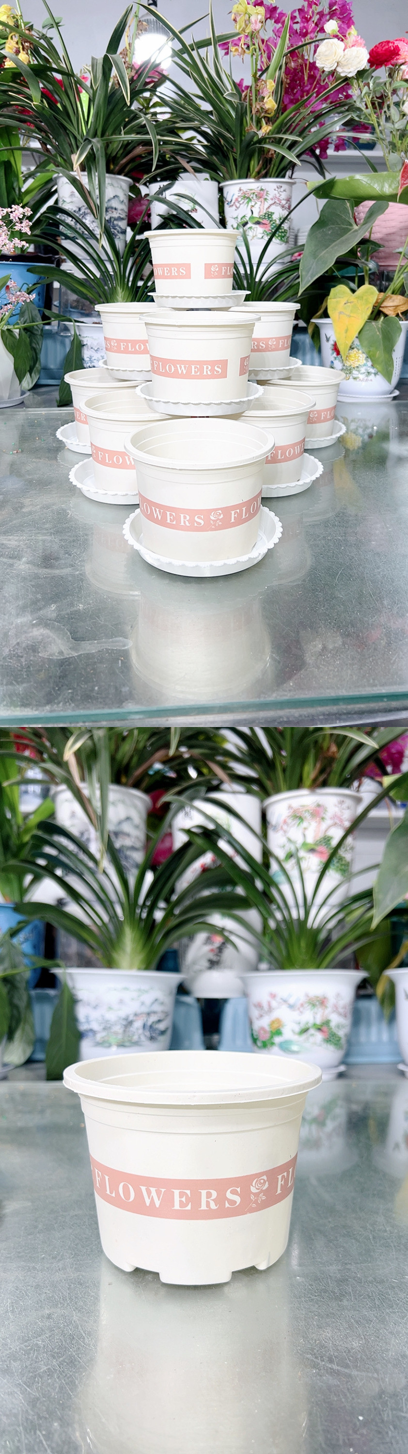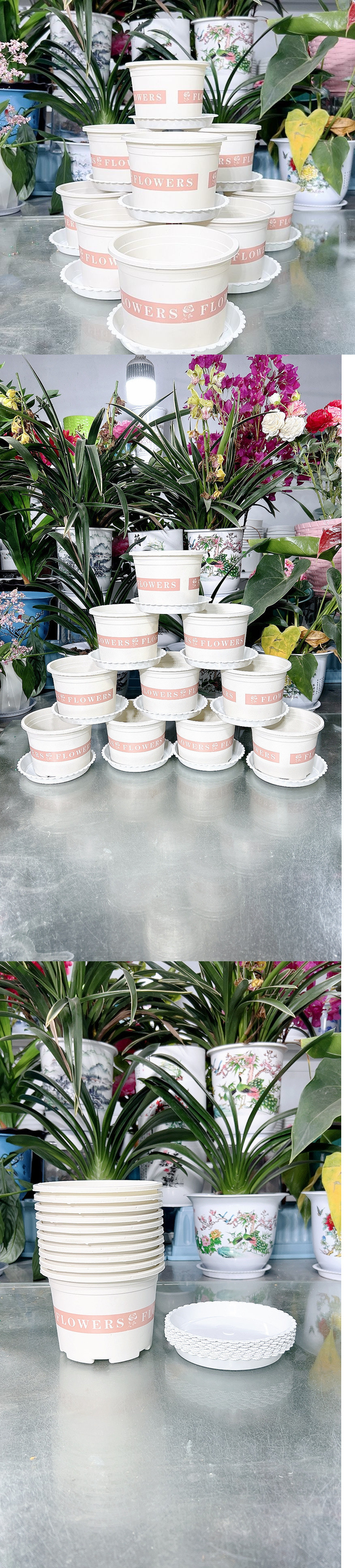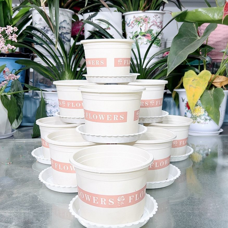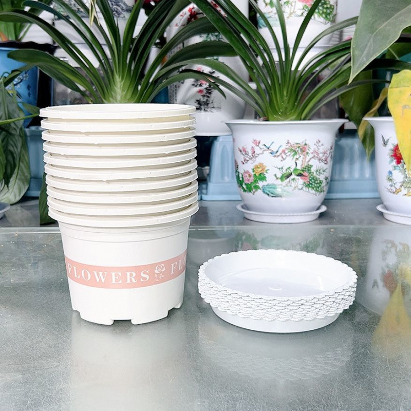 새로운 흰색 낮은 갤런 꽃 냄비 플라스틱은 다육 선인장 공 장수 꽃 진달래 꽃을 키울 수 있습니다스토어 가기