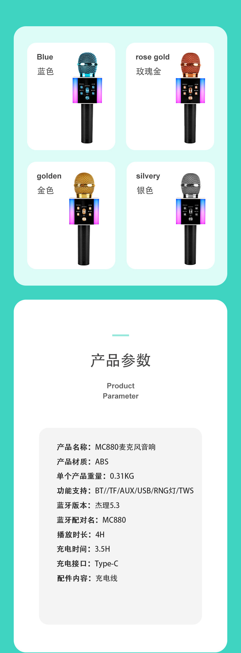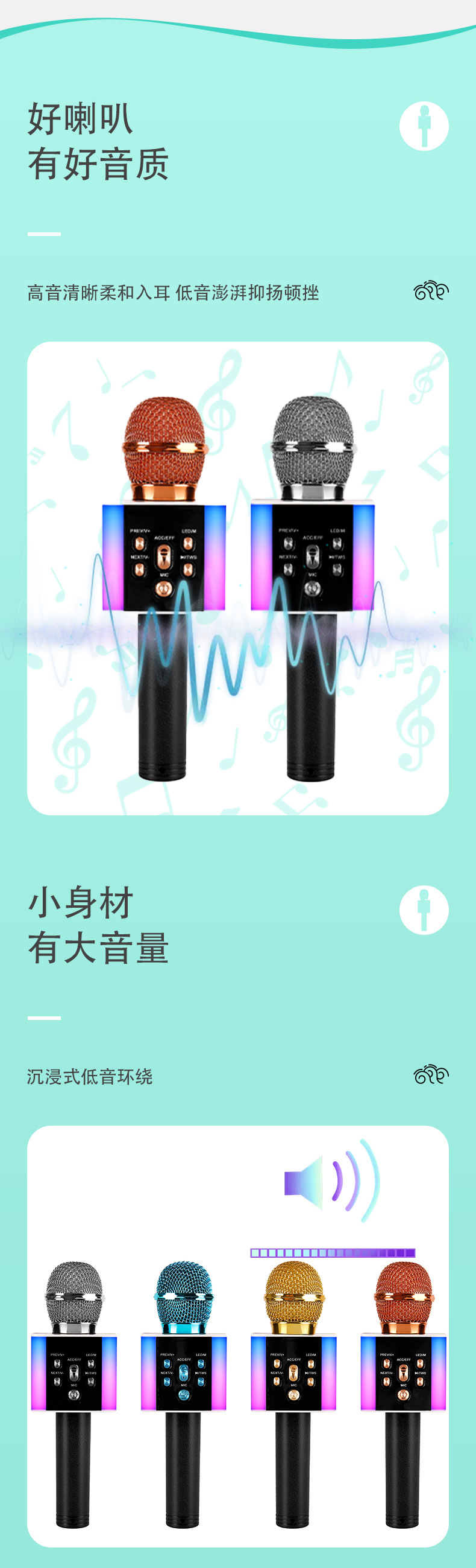 대외 무역 다채로운 라이트 노래방 마이크 고가치 무선 블루투스 노래방에는 오디오 홈 ktv 마이크가 함께 제공됩니다.
