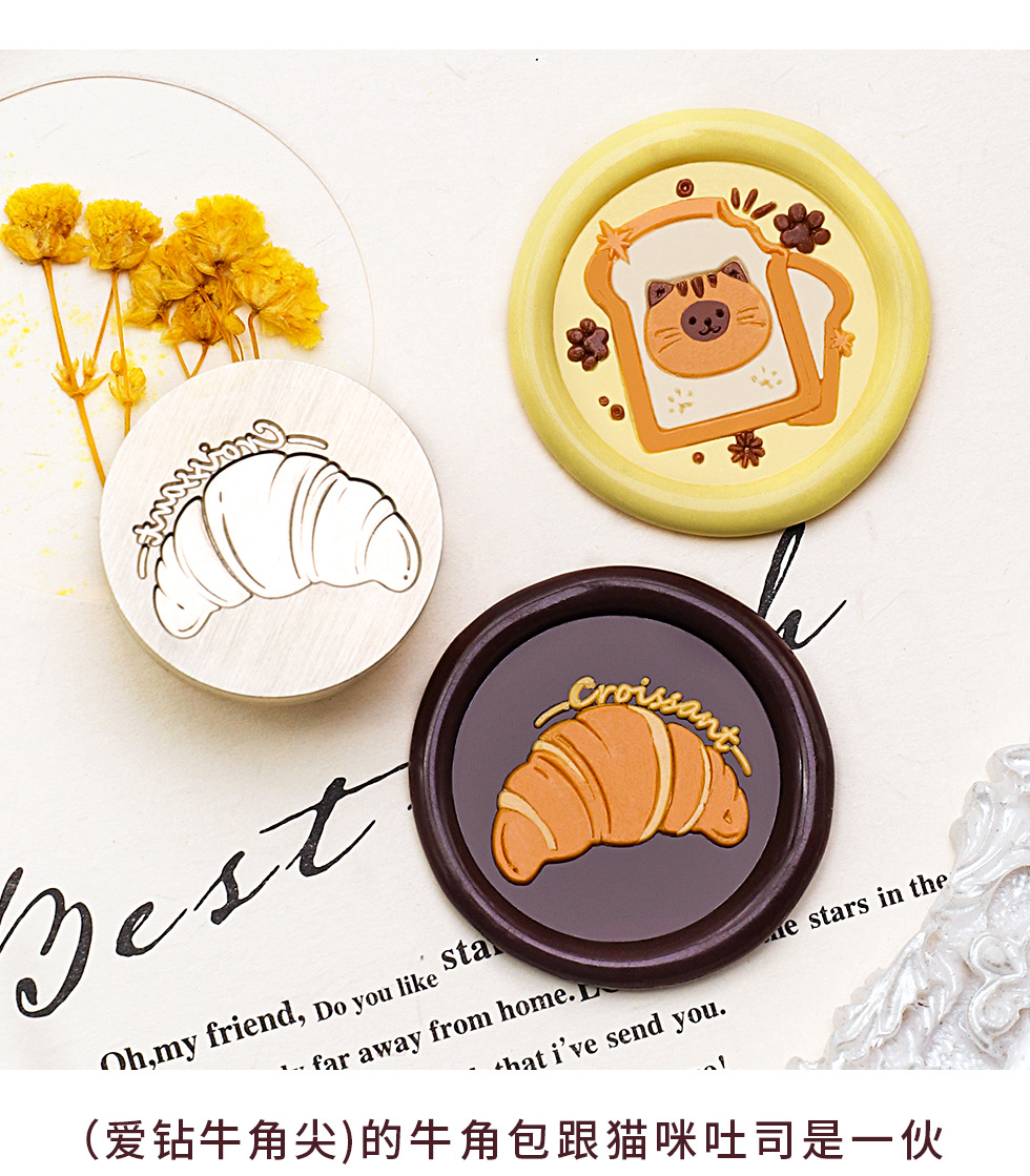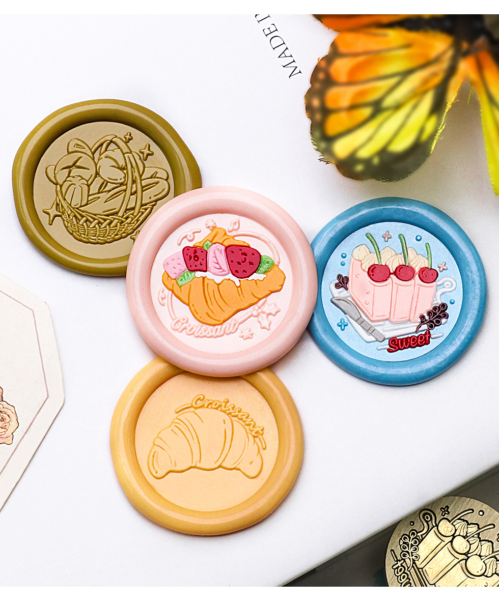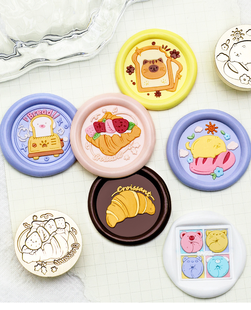 새로운 페인트 씰 헤드 만화 음식 베이킹 시리즈 페인트 구리 헤드 케이크 크루아상 솔리드 황동 프린트 헤드스토어 가기