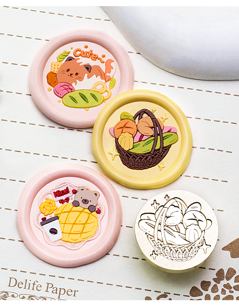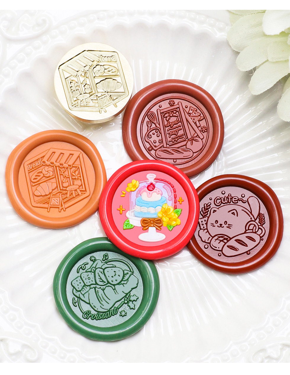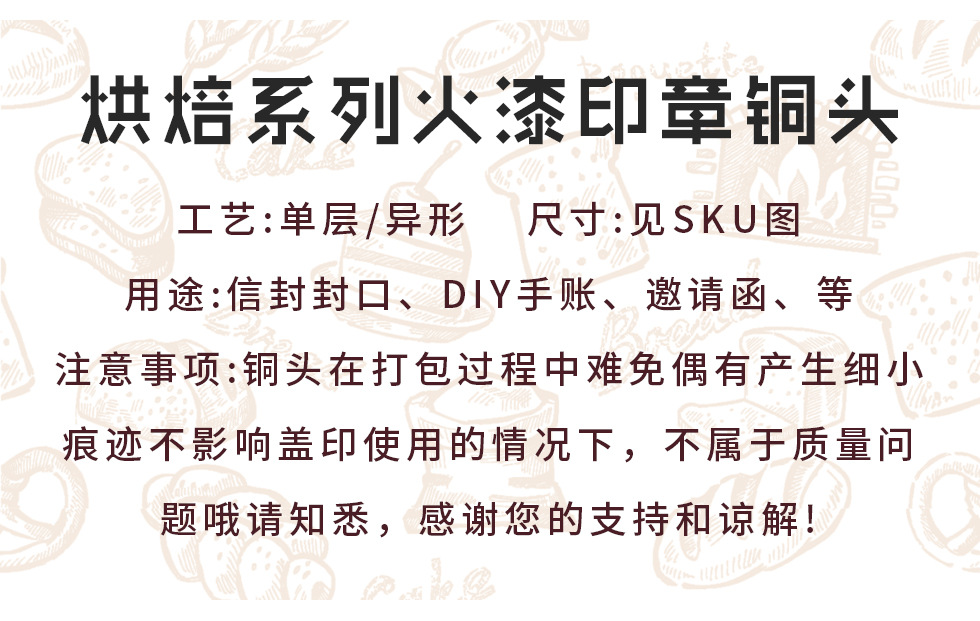 새로운 페인트 씰 헤드 만화 음식 베이킹 시리즈 페인트 구리 헤드 케이크 크루아상 솔리드 황동 프린트 헤드스토어 가기